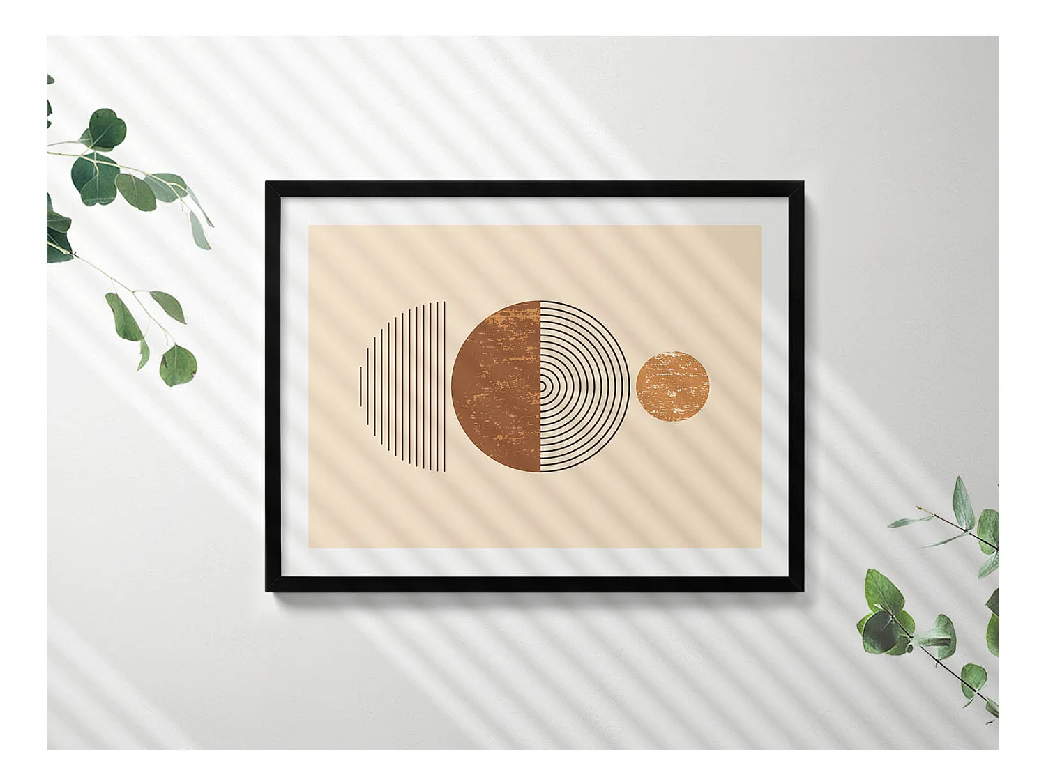Dekoratives Gemälde mit schwarzem Rahmen, geometrische Kunst im Bohème-Stil 80 x 60 cm – perfekt für das Wohn- oder Schlafzimmer