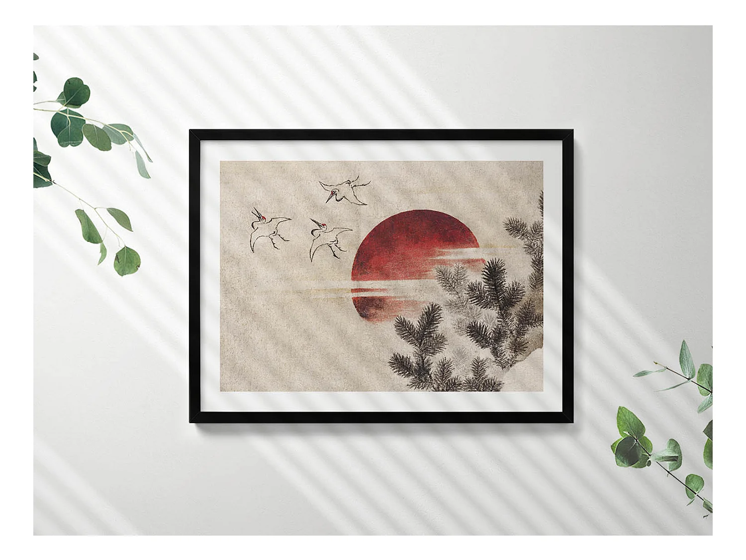 Dekoratives Gemälde mit schwarzem Rahmen, japanische Kunst der untergehenden Sonne 80 x 60 cm – Perfekt für das Wohn- oder Schlafzimmer