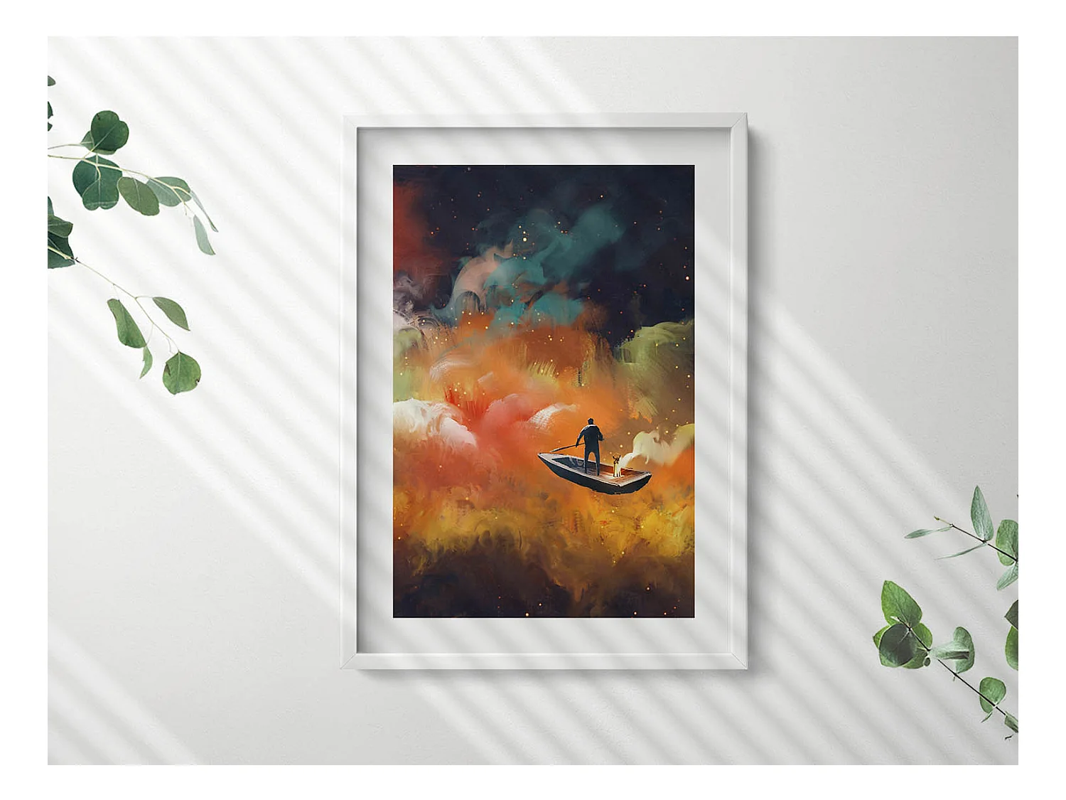 Dekoratives Gemälde mit weißem Rahmen, Eine abstrakte Vorstellung vom Erwachsenenleben 50 x 70 cm – Perfekt für das Wohn- oder Schlafzimmer