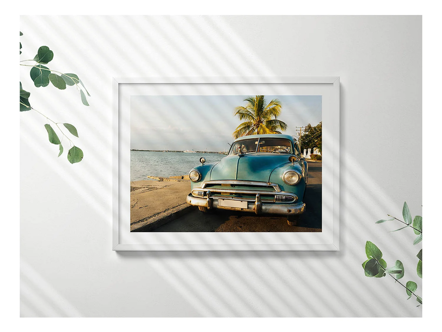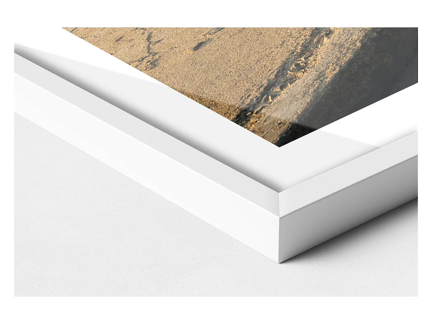 Dekoratives Gemälde mit weißem Rahmen, fließende goldene Formen auf beigem Hintergrund, 80 x 60 cm – perfekt für das Wohn- oder Schlafzimmer