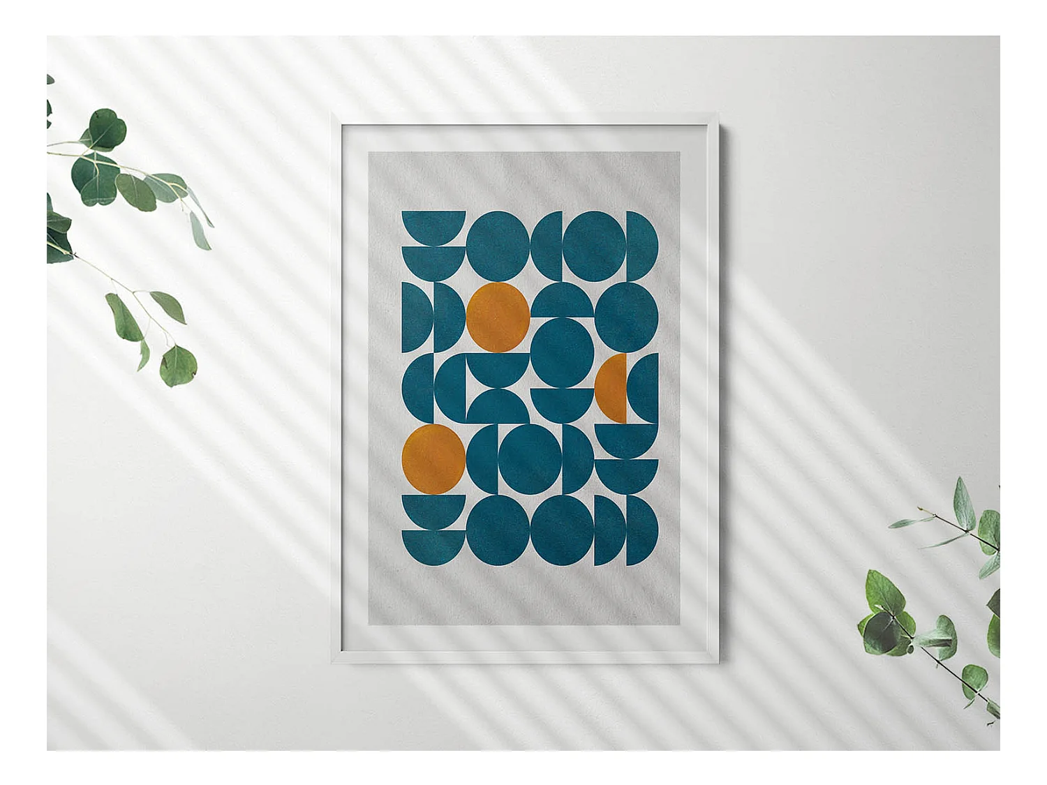 Dekoratives Gemälde mit weißem Rahmen, geometrische Komposition 70 x 100 cm – perfekt für das Wohn- oder Schlafzimmer