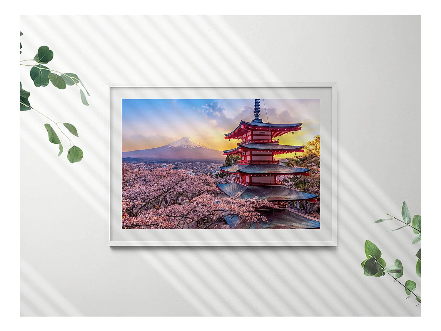 Dekoratives Gemälde mit weißem Rahmen, japanische Konstruktion 100 x 70 cm – perfekt für das Wohn- oder Schlafzimmer