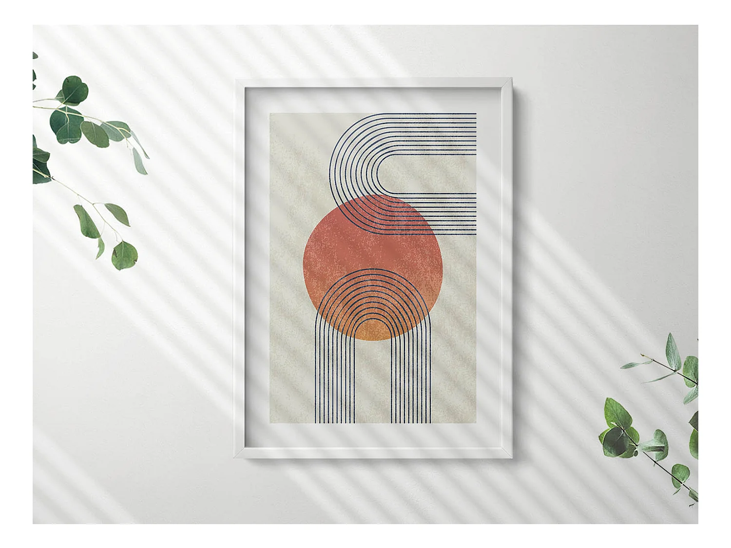 Dekoratives Gemälde mit weißem Rahmen, Linien und Kreis moderner Kunst 50 x 70 cm – Perfekt für das Wohn- oder Schlafzimmer