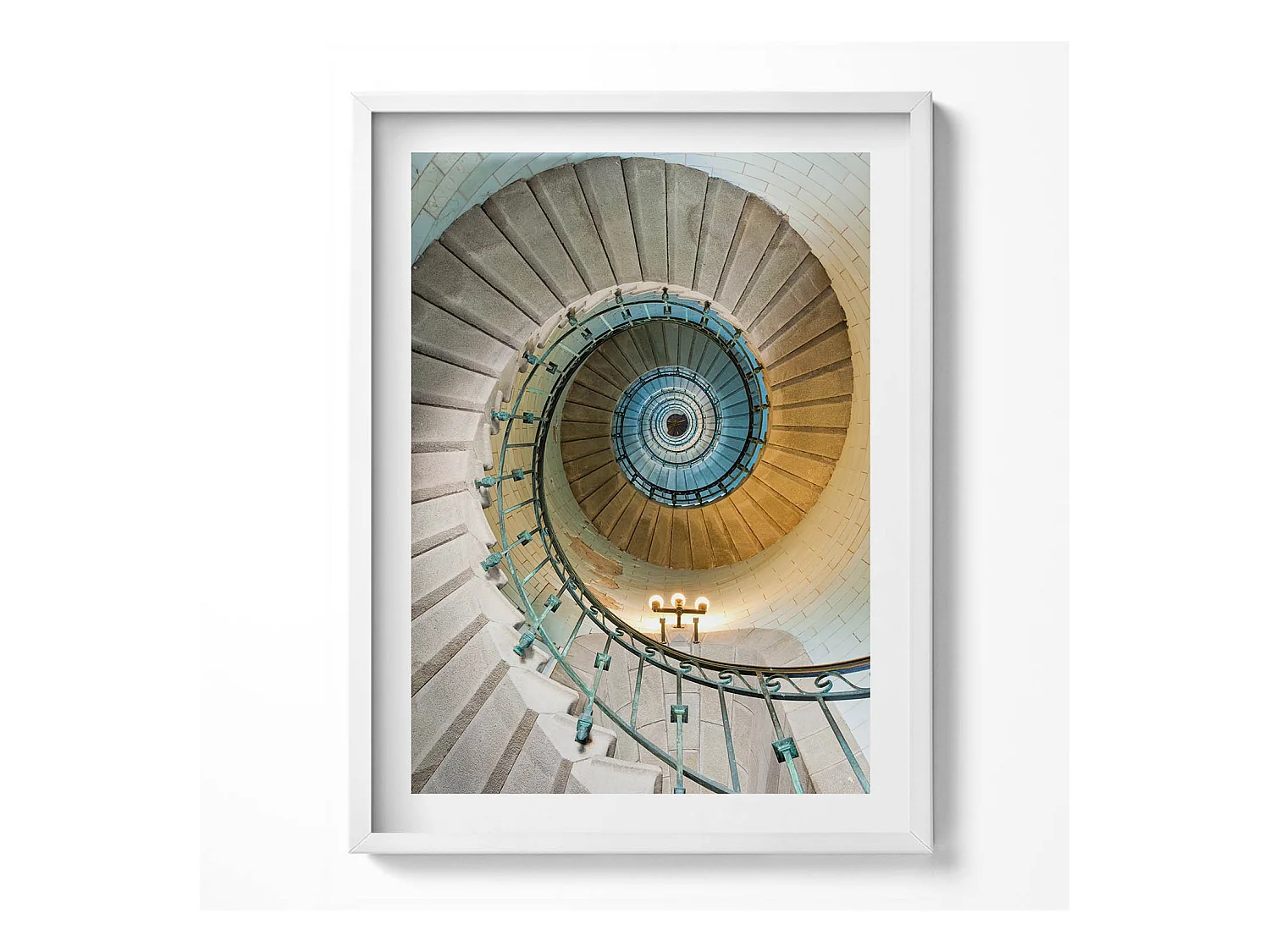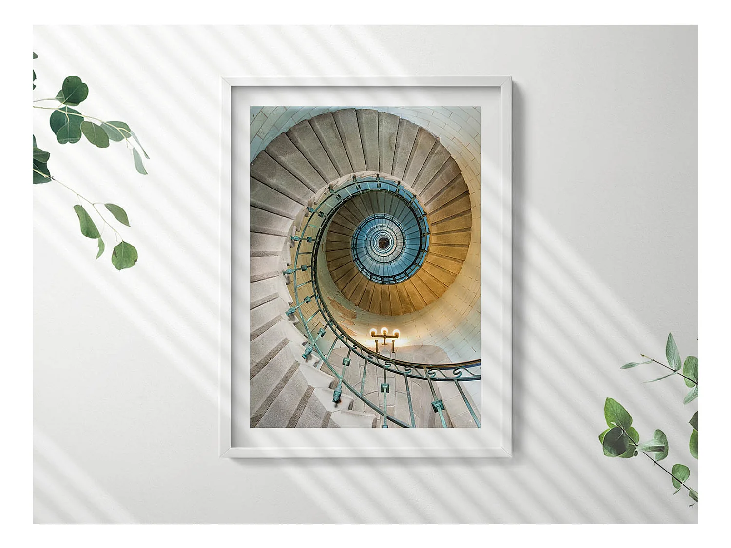 Dekoratives Gemälde mit weißem Rahmen, Wendeltreppe 60 x 80 cm – Perfekt für das Wohn- oder Schlafzimmer