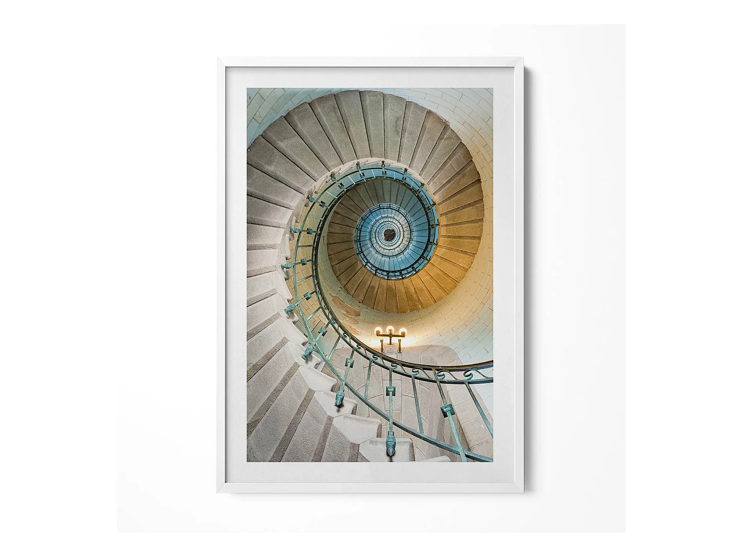 Dekoratives Gemälde mit weißem Rahmen, Wendeltreppe 70 x 100 cm – Perfekt für das Wohn- oder Schlafzimmer