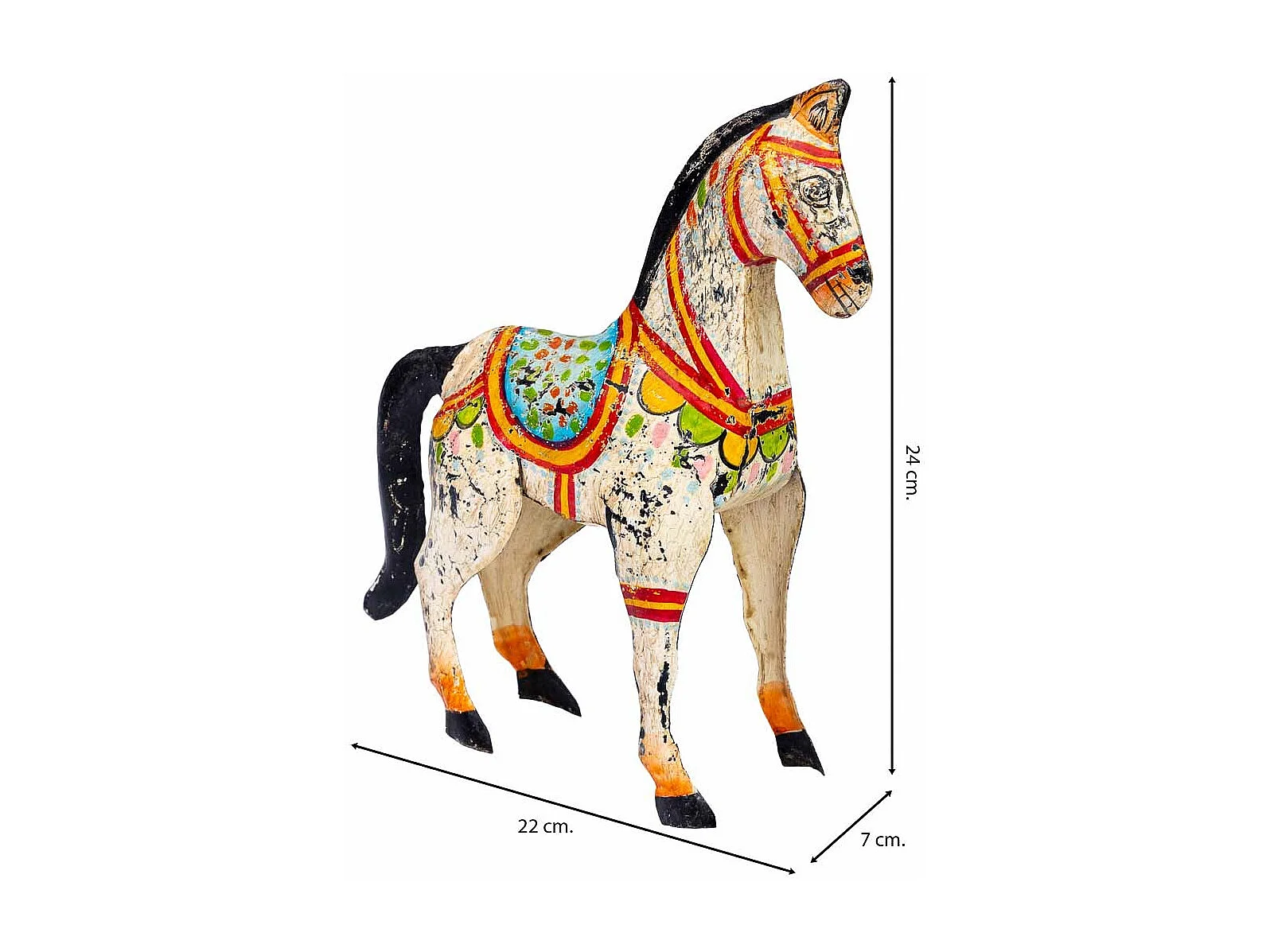 Dekoratives Pferd aus gealtertem, lackiertem Metall, 22x7x24