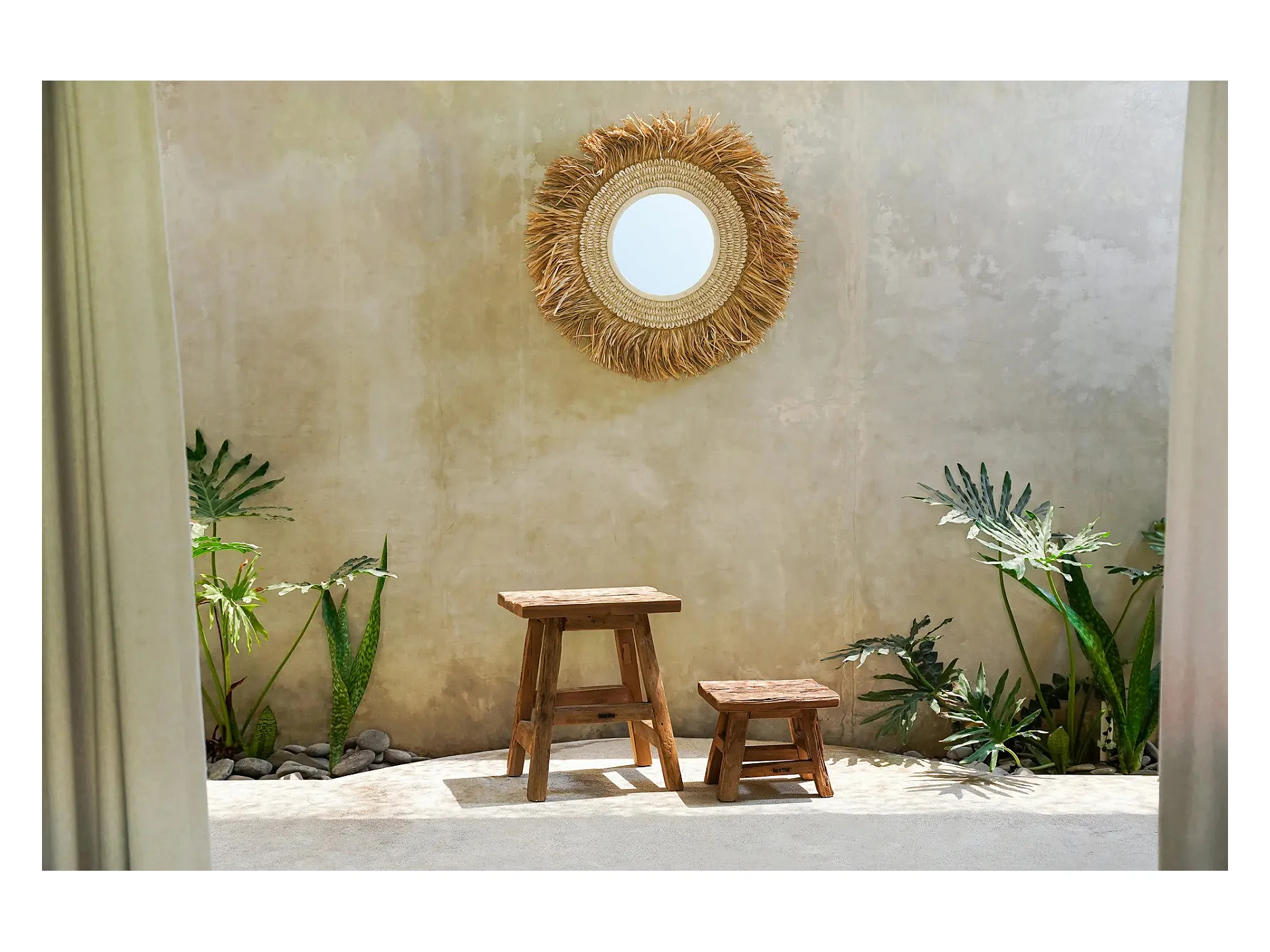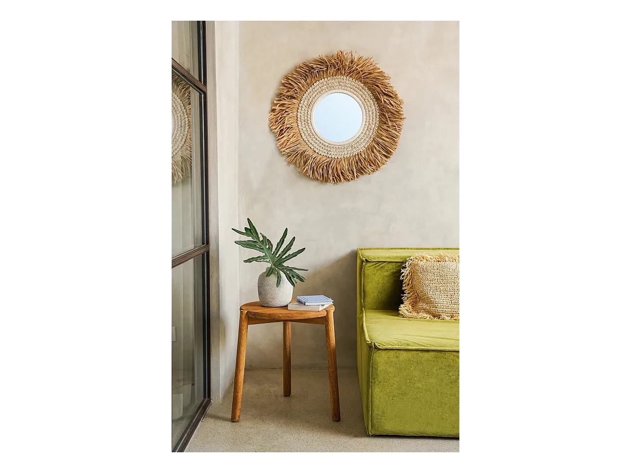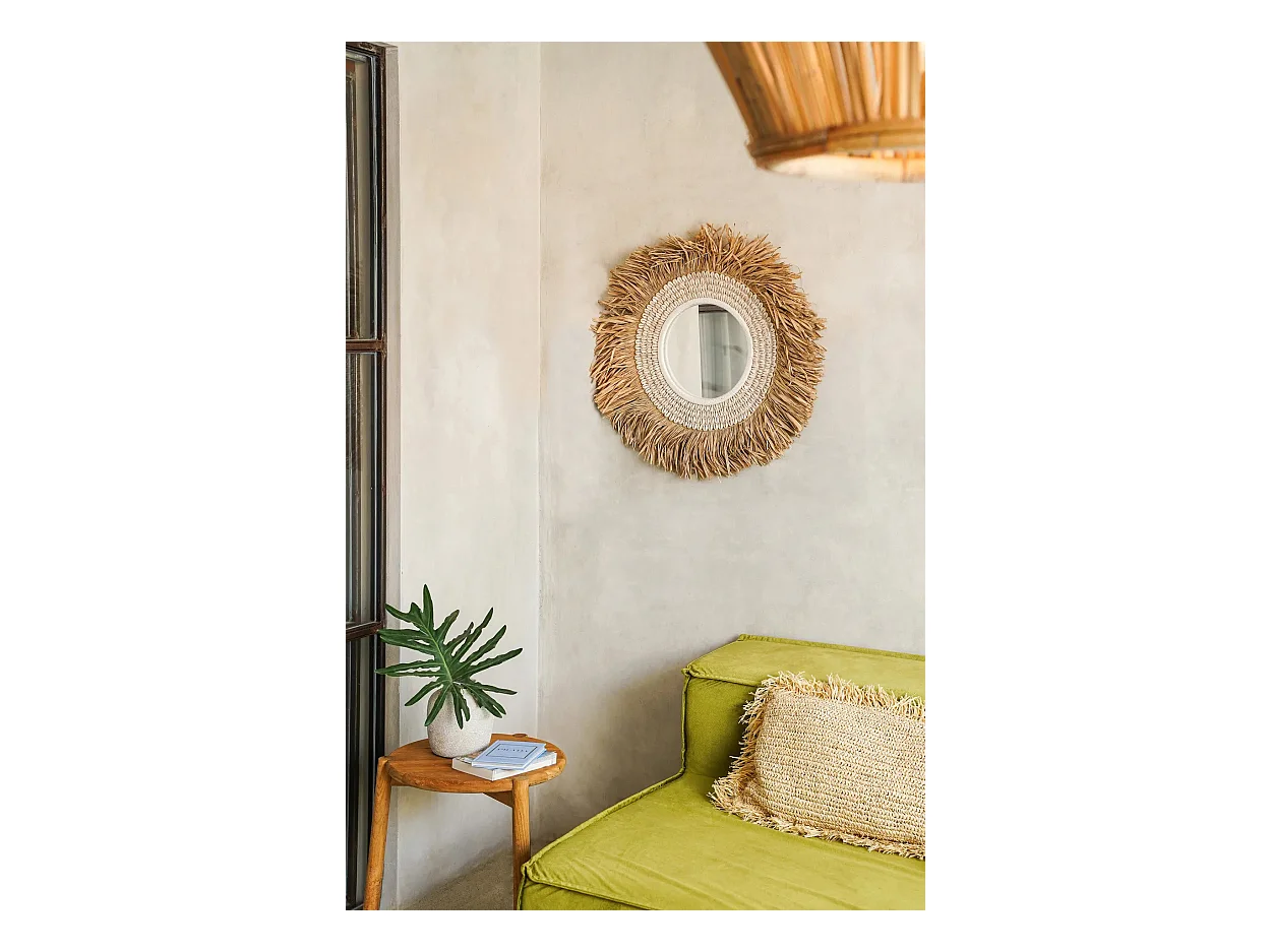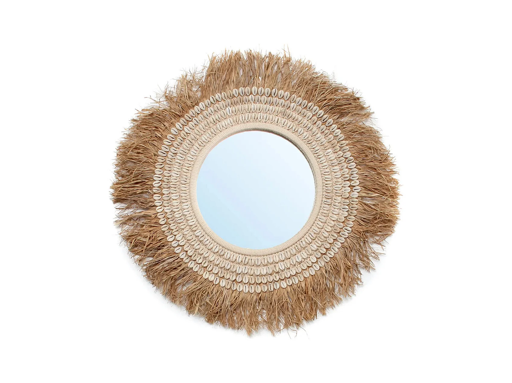 Der Raffia Cowrie Spiegel - Natur Weiss