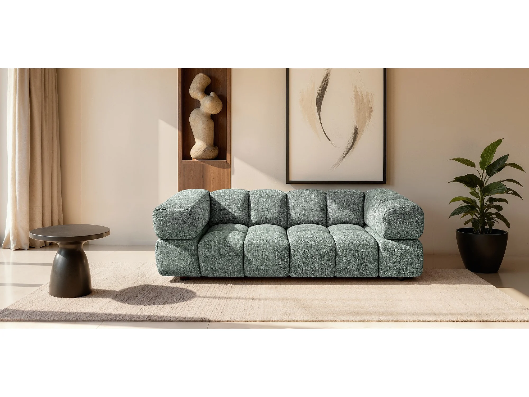 Design 3-Sitzer Sofa ALVERO 240 cm – Puente Salbeigrün 33– Strukturstoff Premium – HR-Schaum