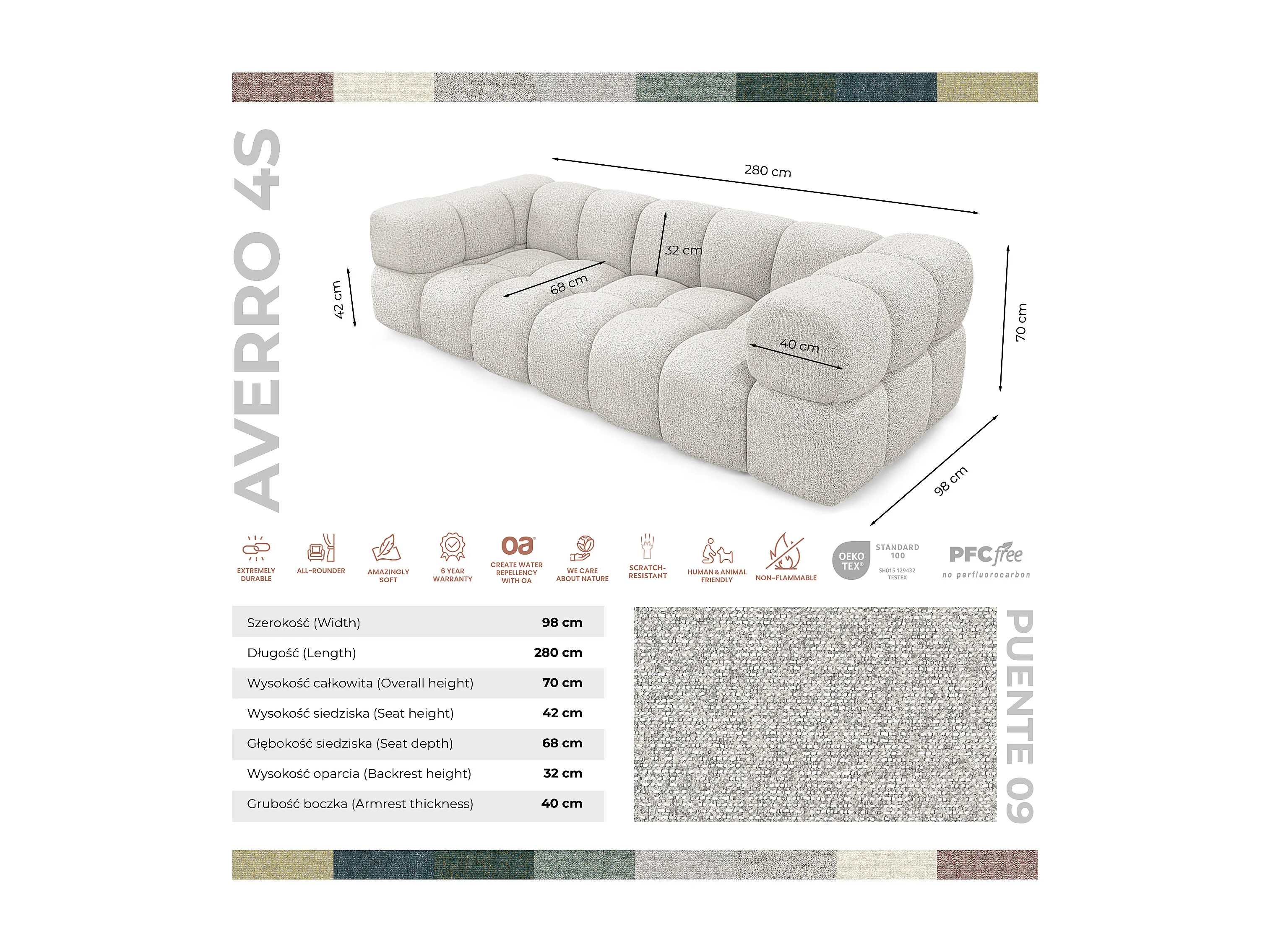 Design 4-Sitzer Sofa ALVERO 280 cm – Puente Beigegrau 09 – Strukturstoff Premium – HR-Schaum