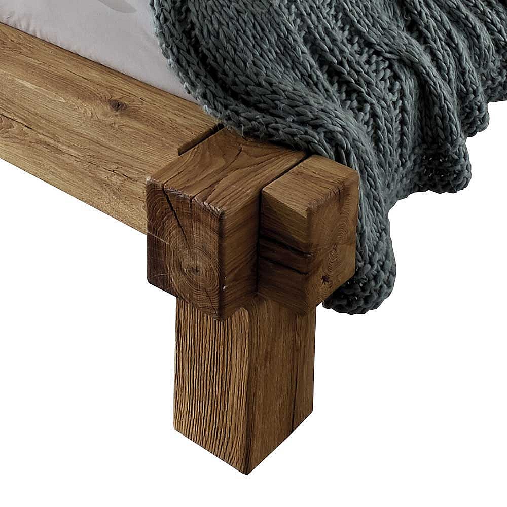 Design Balkenbett aus Wildeiche Massivholz geölt