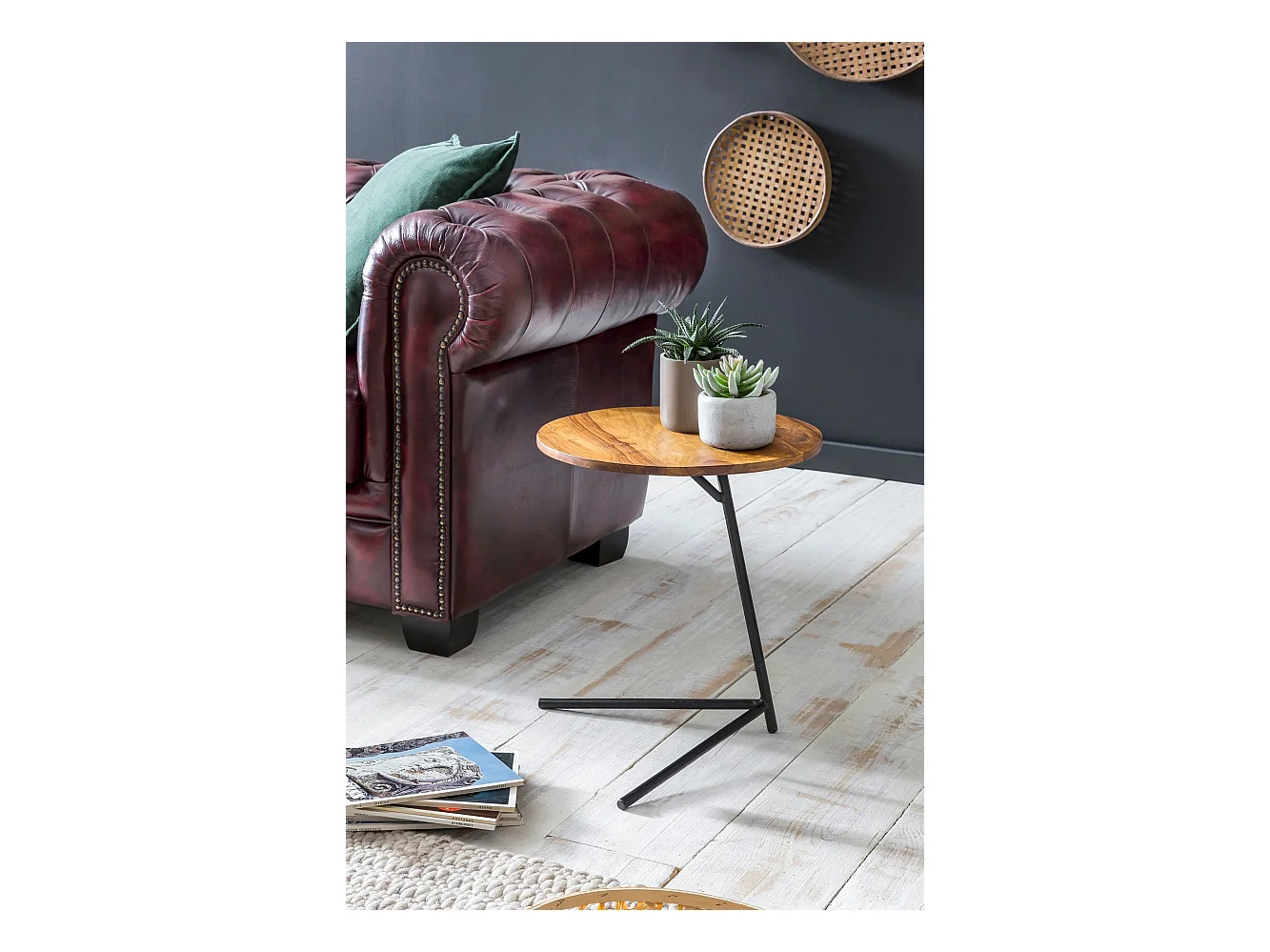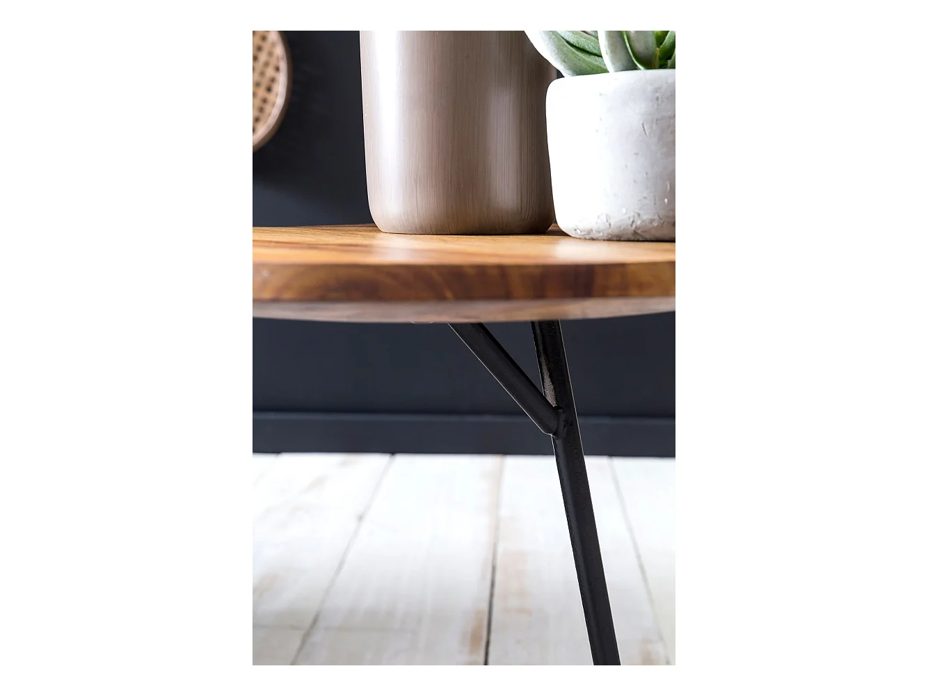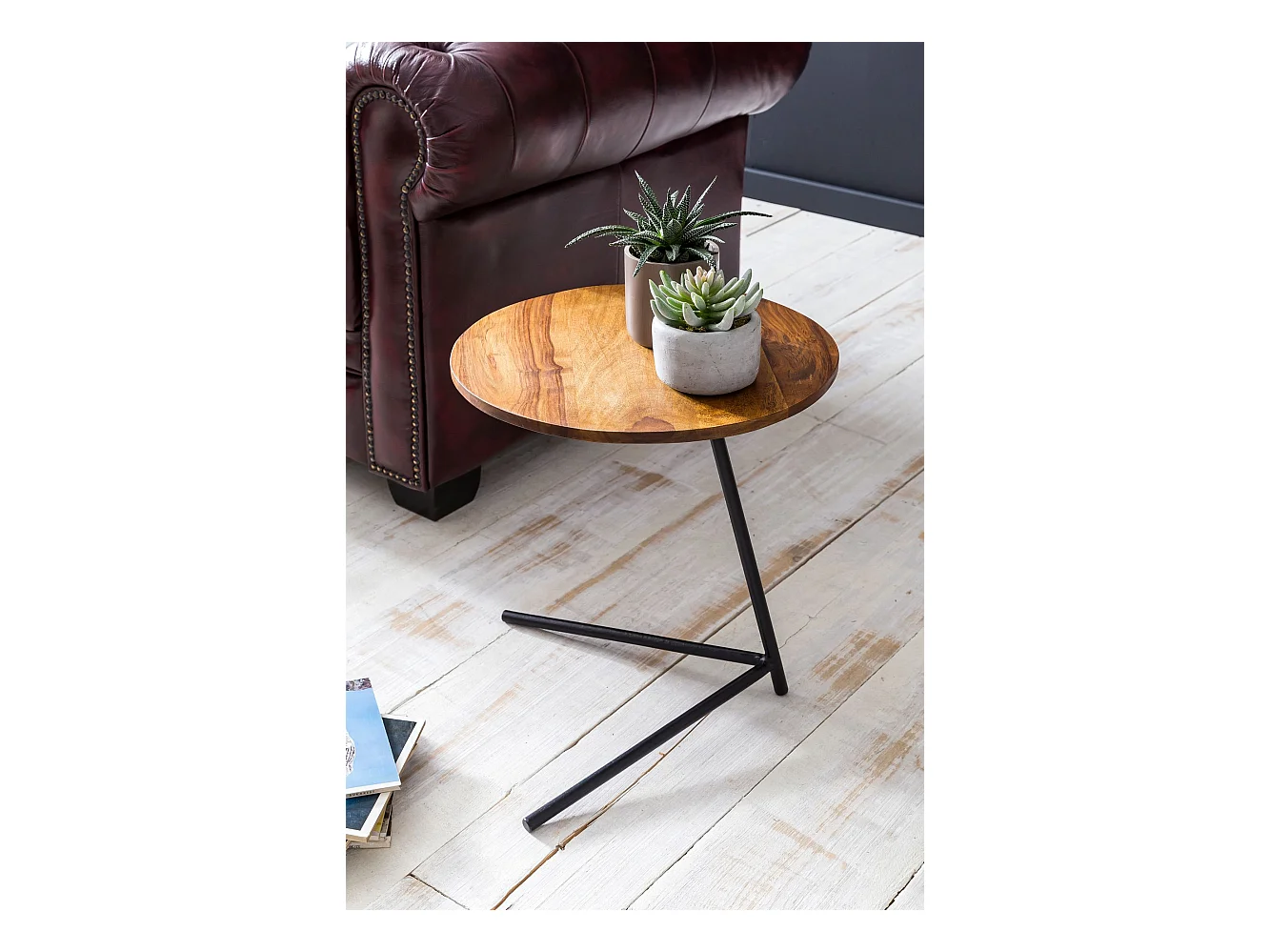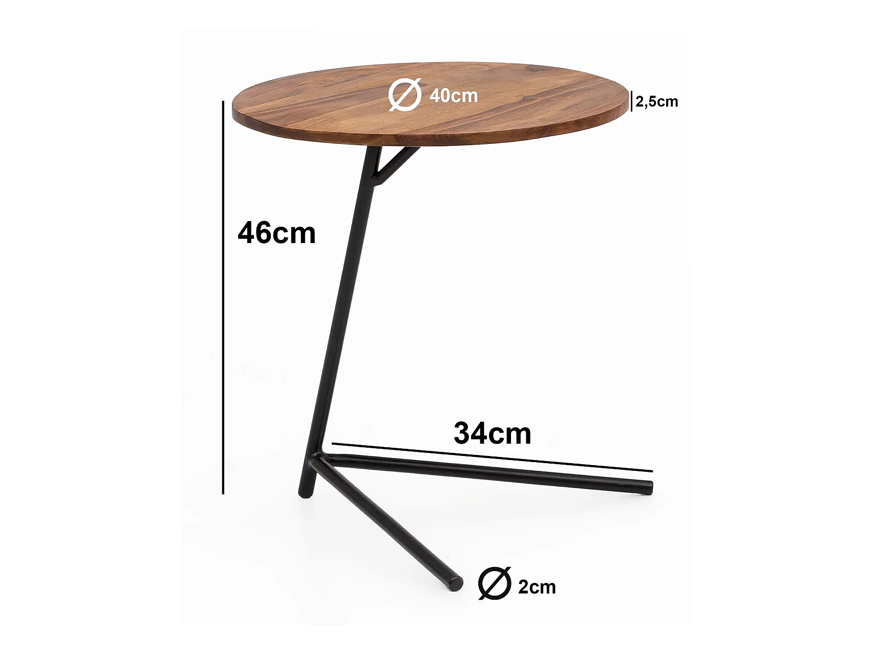 Design Beistelltisch Ø 40 cm Couchtisch Sheesham Massivholz Metall