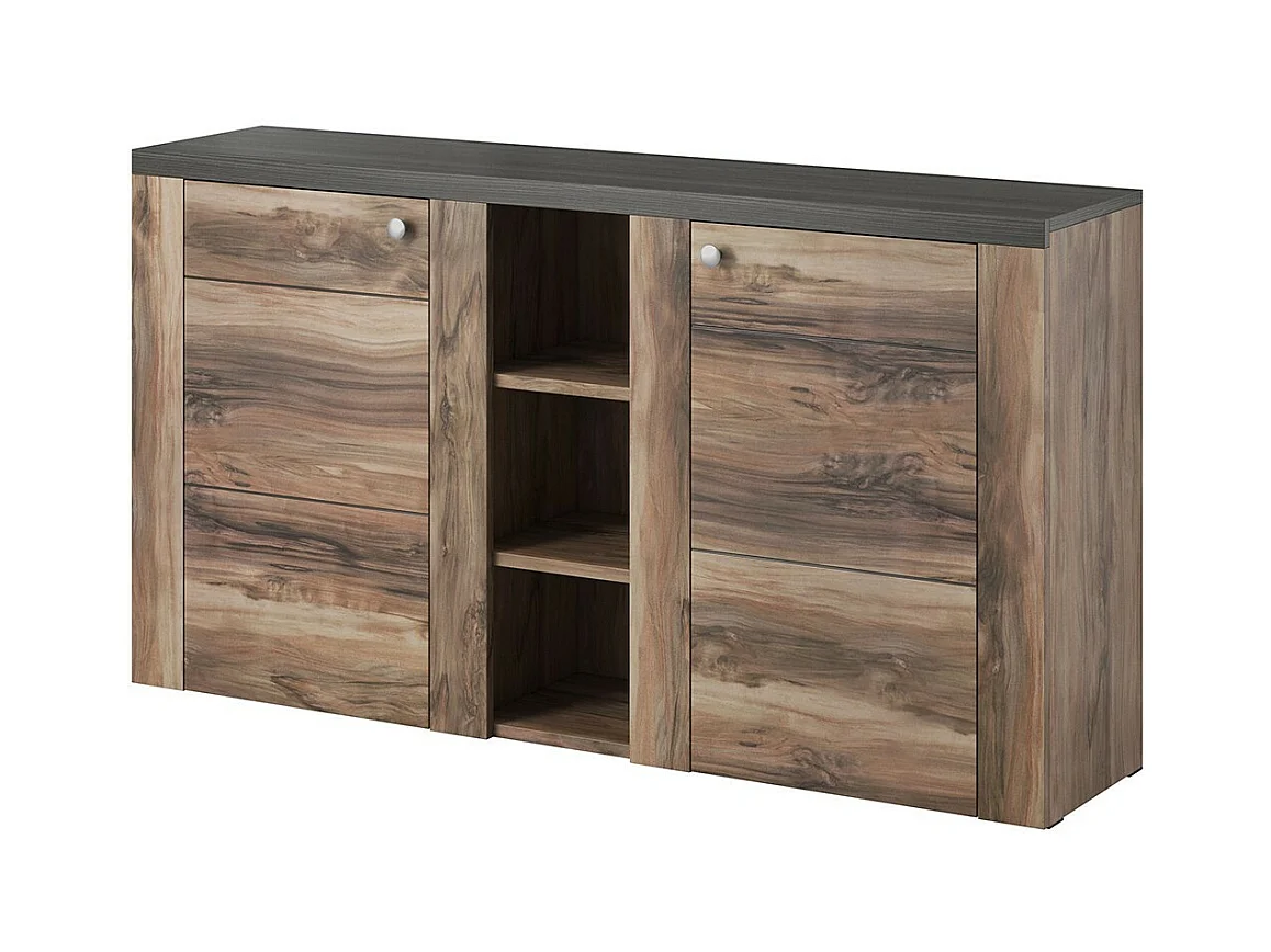 Design-Buffet 155cm für das Wohnzimmer in Walnussfarbe und schwarzem Holzeffekt, Kollektion SANTIAGO.