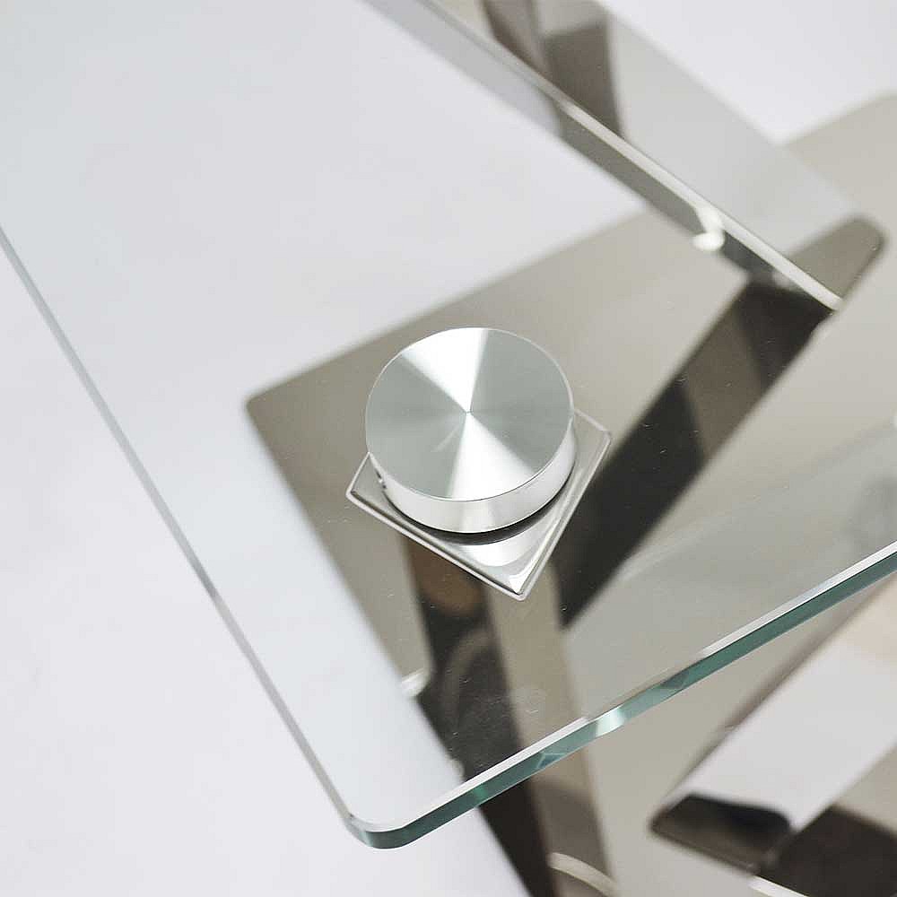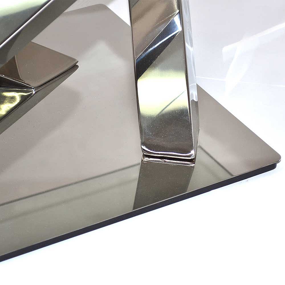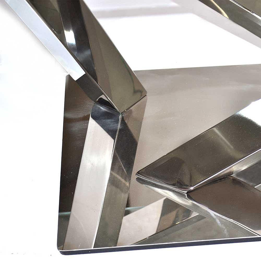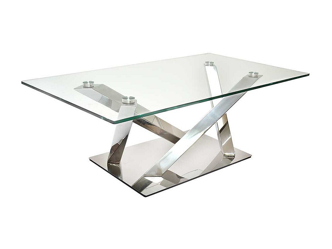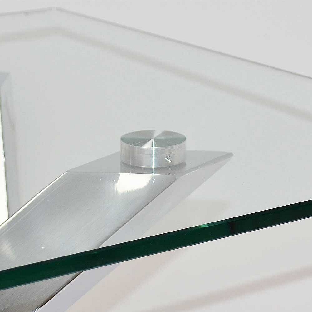 Design Couchtisch aus Sicherheitsglas und Edelstahl Mikado Fußgestell