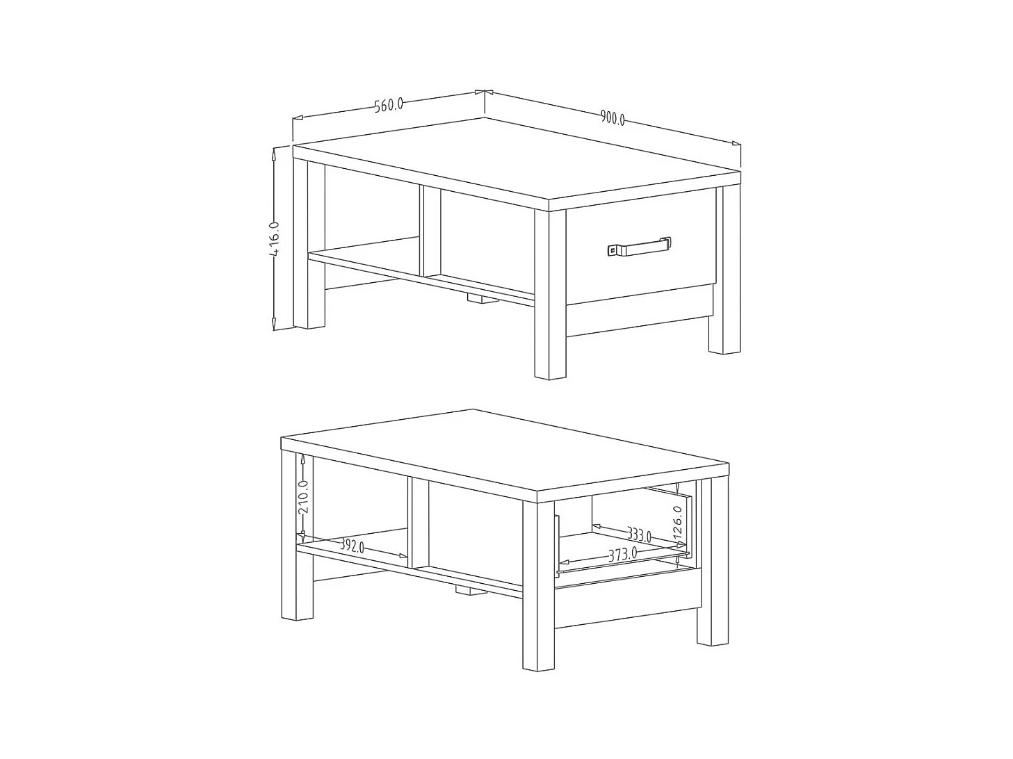 Design-Couchtisch DARWIN - Fichte und Schwarz
