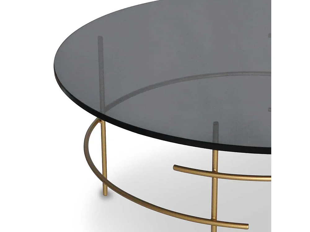 Design Couchtisch mit runder Rauchglasplatte 4-Fußgestell in Goldfarben