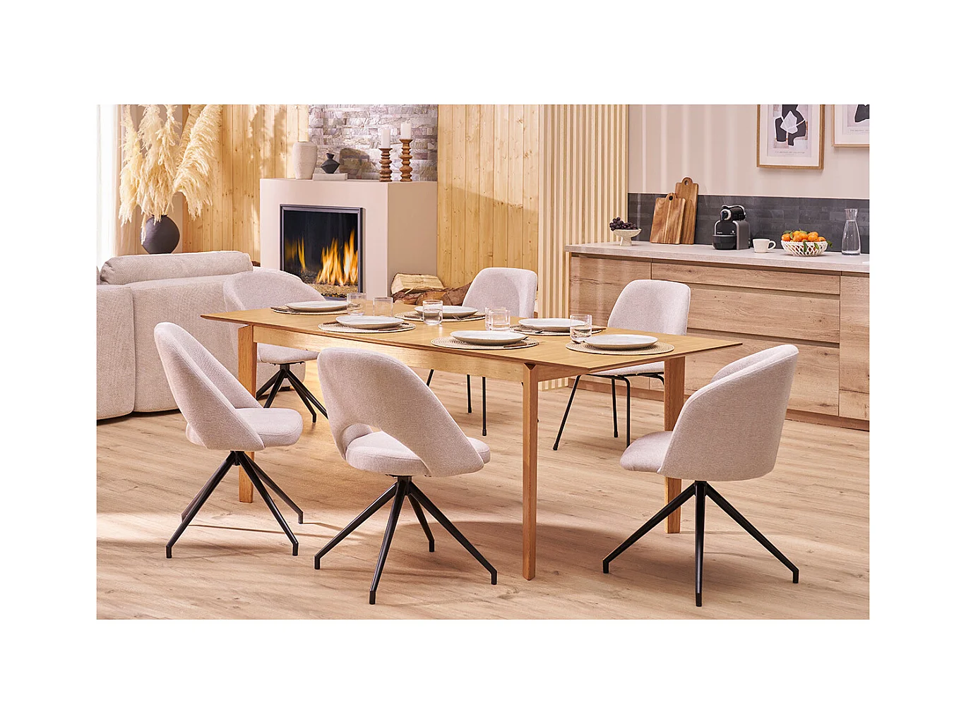 Design-Drehstuhl 360° aus beigem strukturiertem Samteffektstoff und schwarzem Metall VANITY