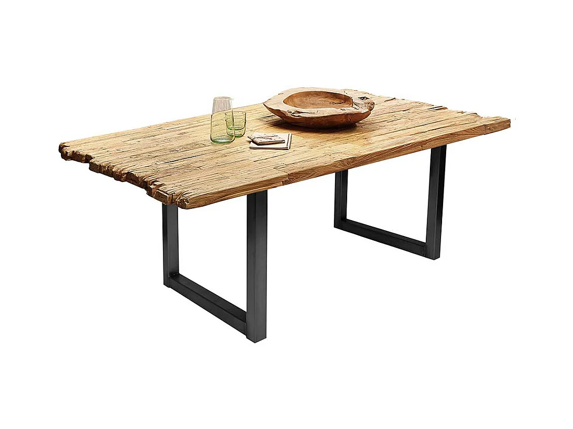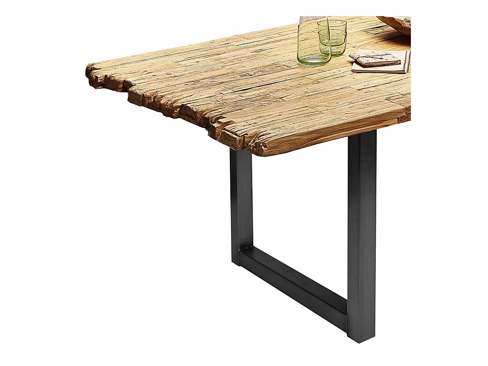 Design Esszimmertisch aus Teak Recyclingholz und Stahl 100 cm tief