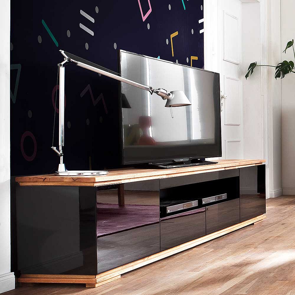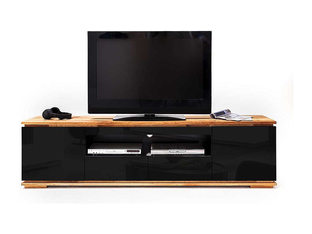 Design Fernsehunterschrank in Schwarz Hochglanz Asteiche Massivholz