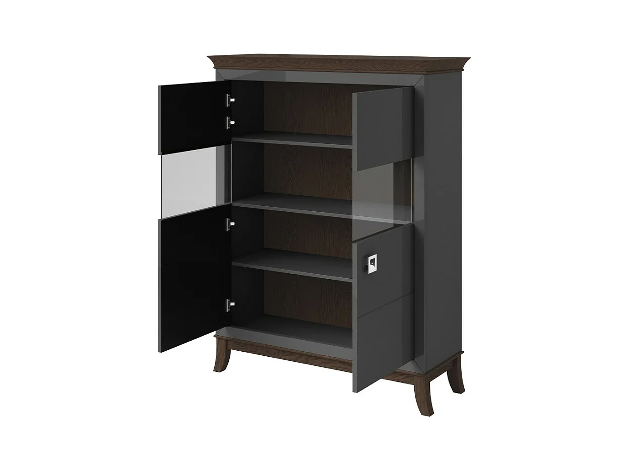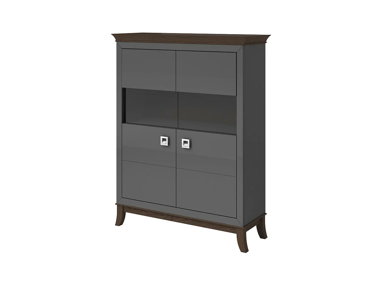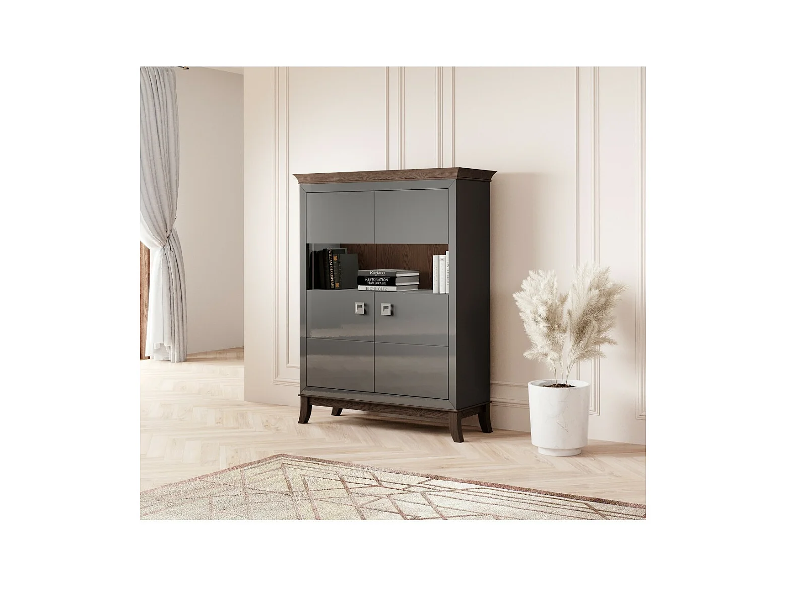 Design-Hochschrank mit 2 Türen für das Wohnzimmer in grauer und dunkler Eichenfarbe, Kollektion PALACE