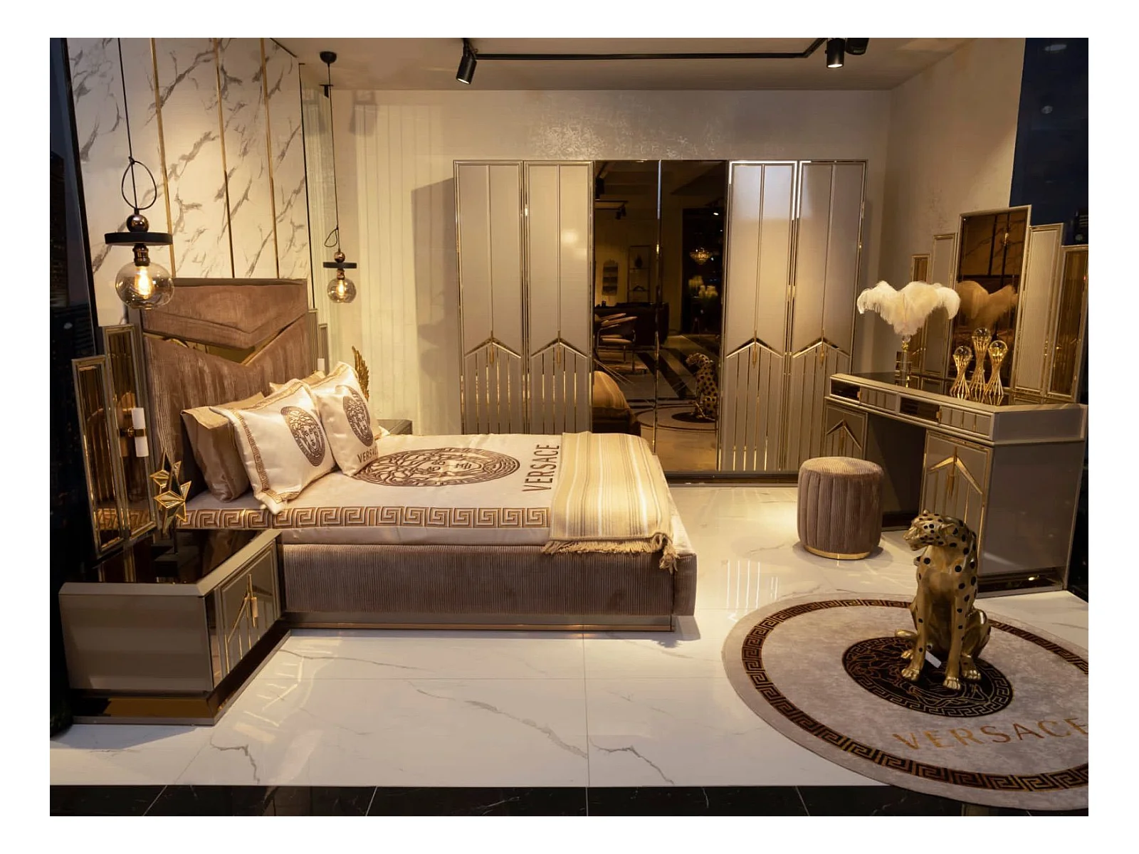 Design Schlafzimmer Komplett Set Bett Nachttisch Kommode Neu Italien 6 tlg. Sets