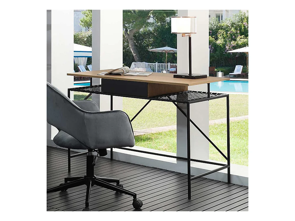 Design Schreibtisch in Holz Naturfarben Schwarz