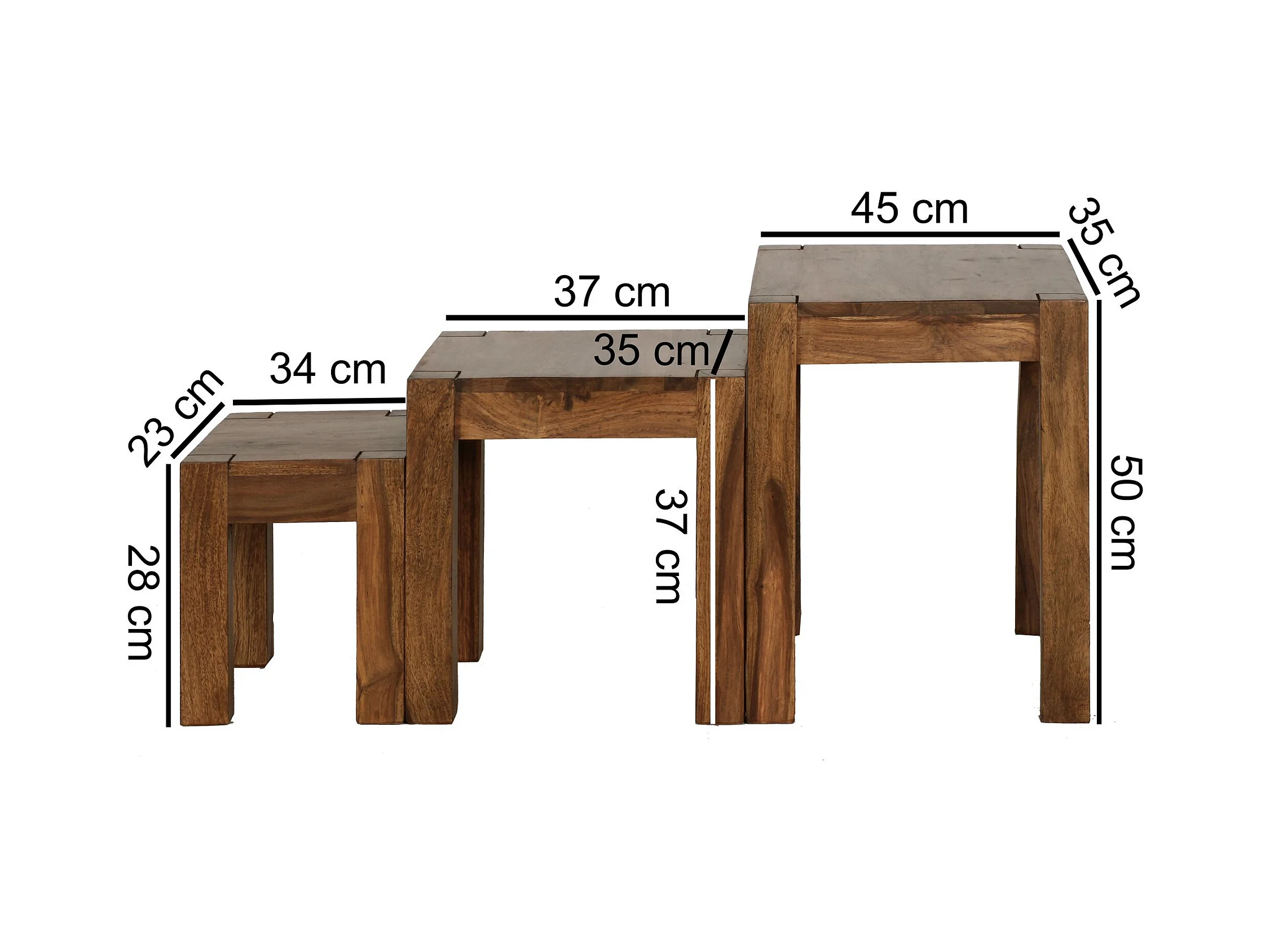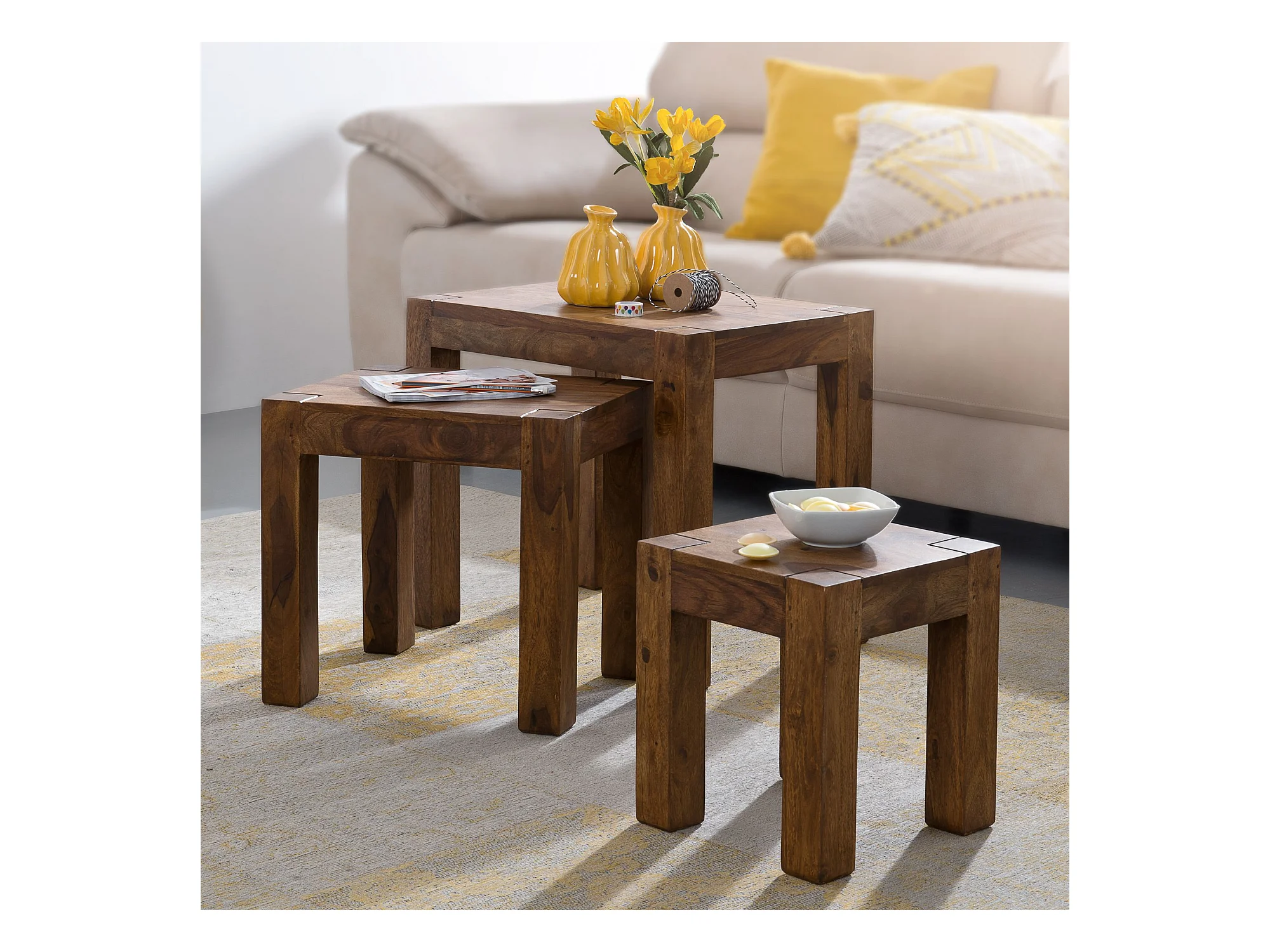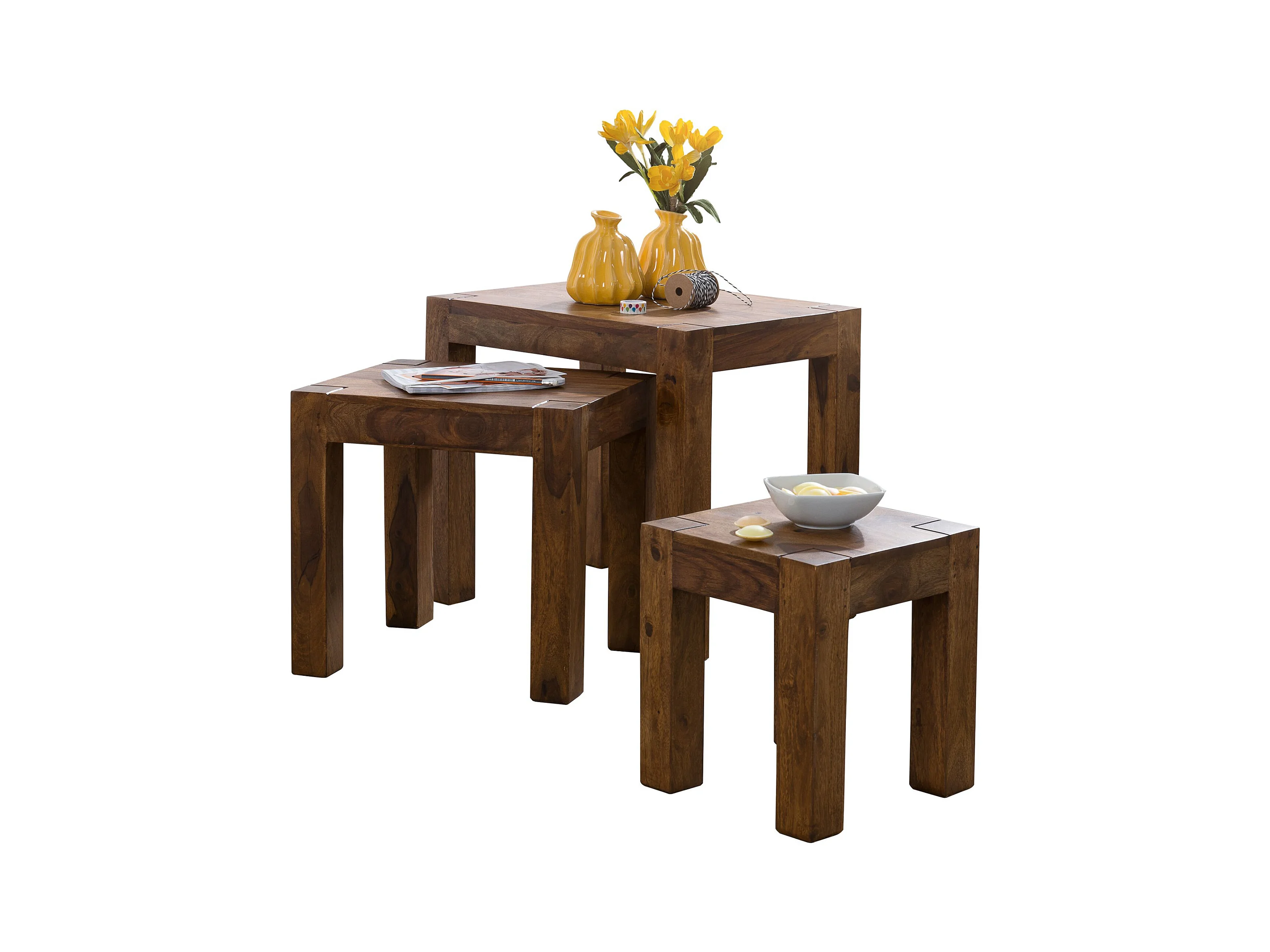 Design Sheesham 3-teiliger Satz Beistell Tisch Massivholz Couchtisch Neu