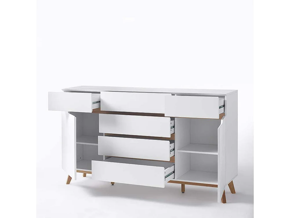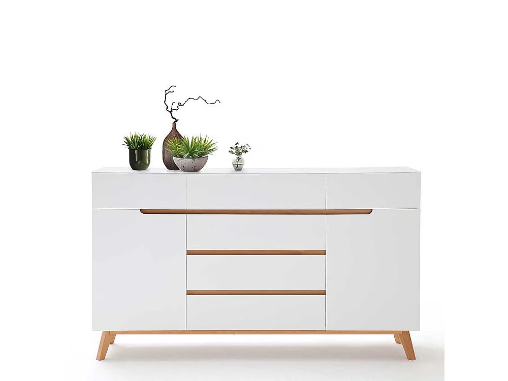 Design Sideboard in Weiß Asteiche Massivholz