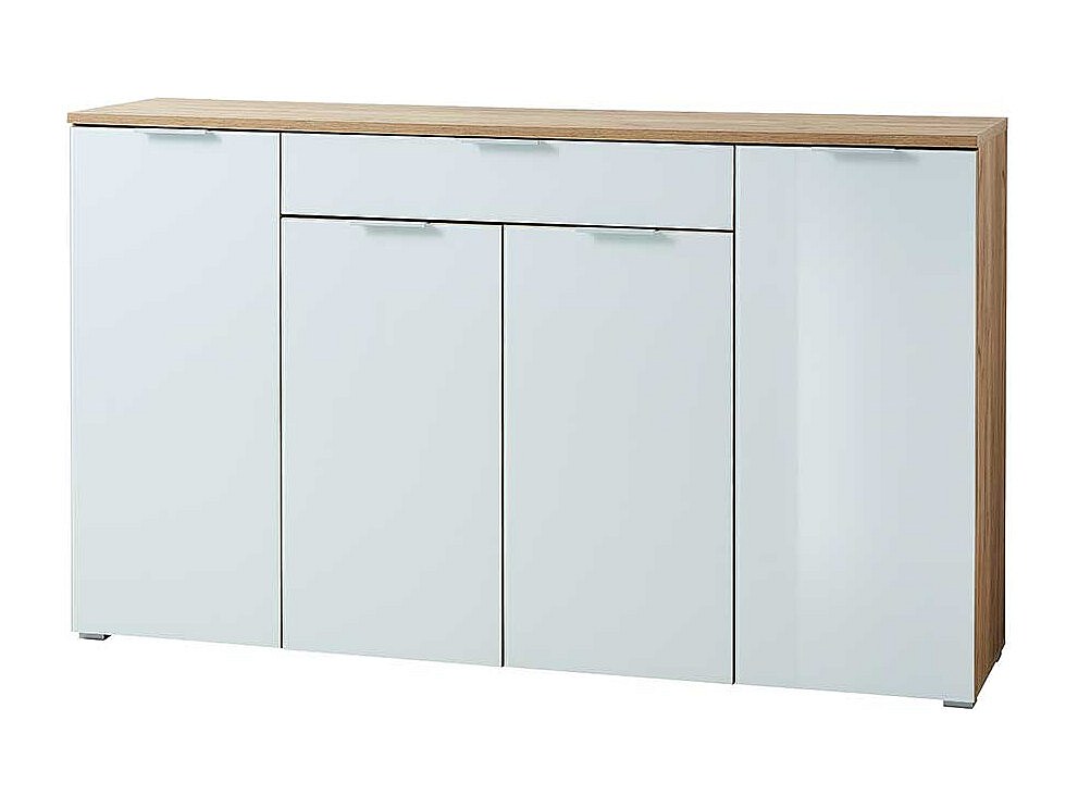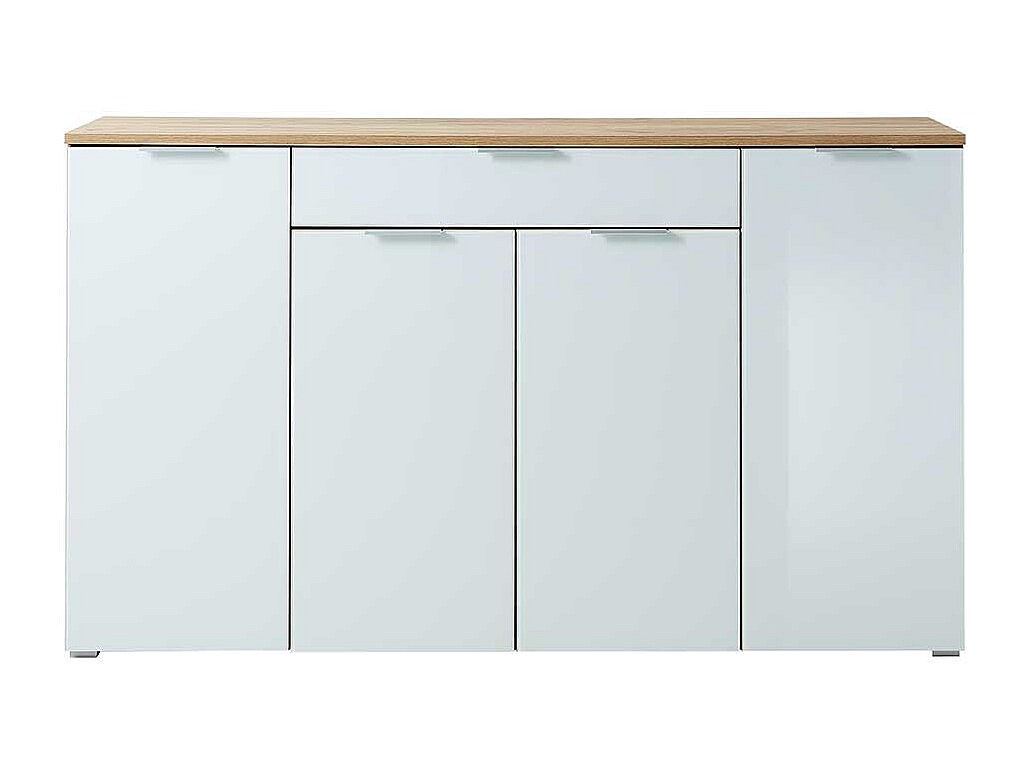 Design Sideboard in Weiß Glas beschichtet Eiche Dekor
