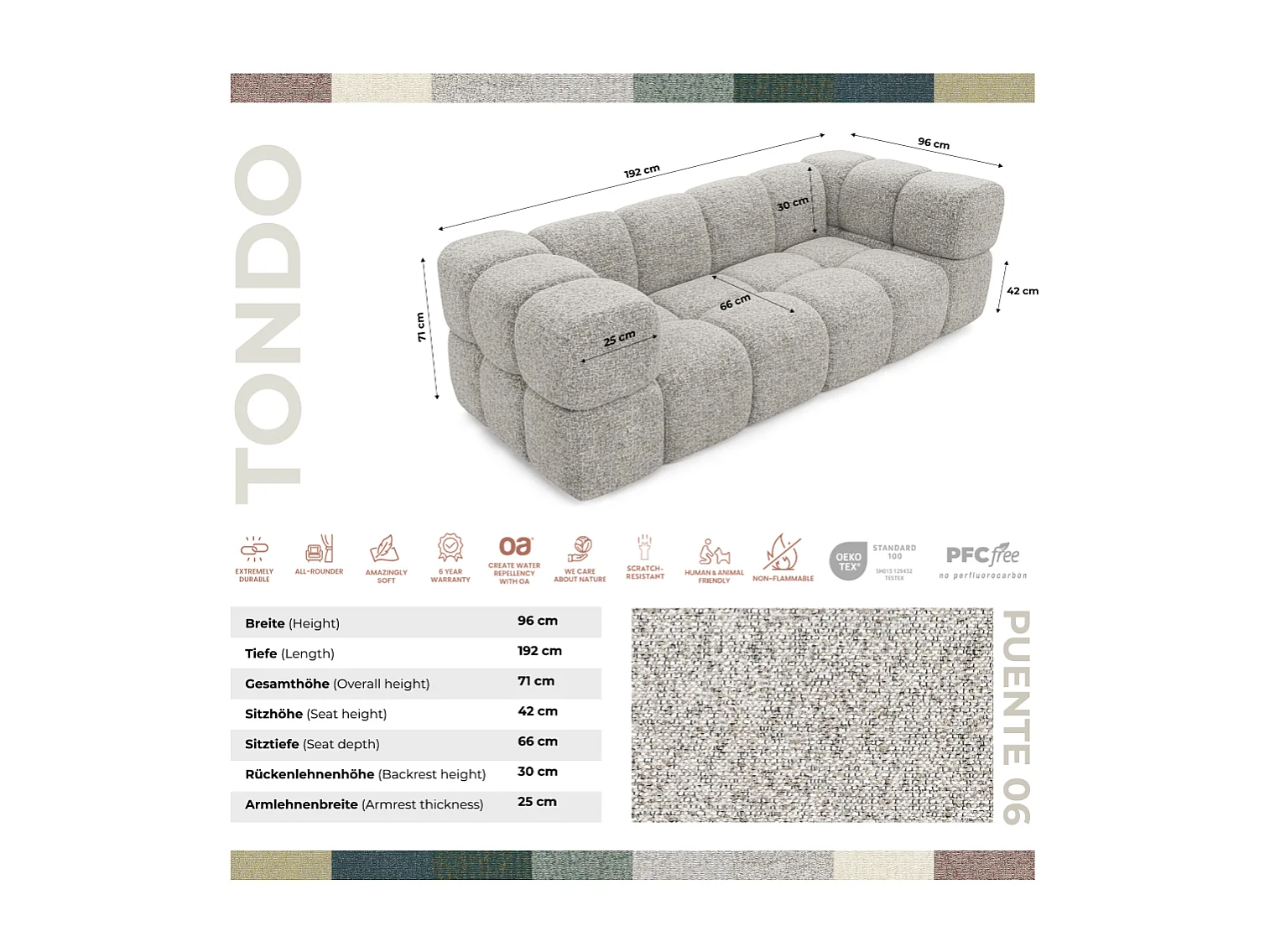 Design-Sofa 3-Sitzer TONDO PUENTE 06 – Strukturstoff in Bouclé-Optik – Wellenförmiges Design – Beige