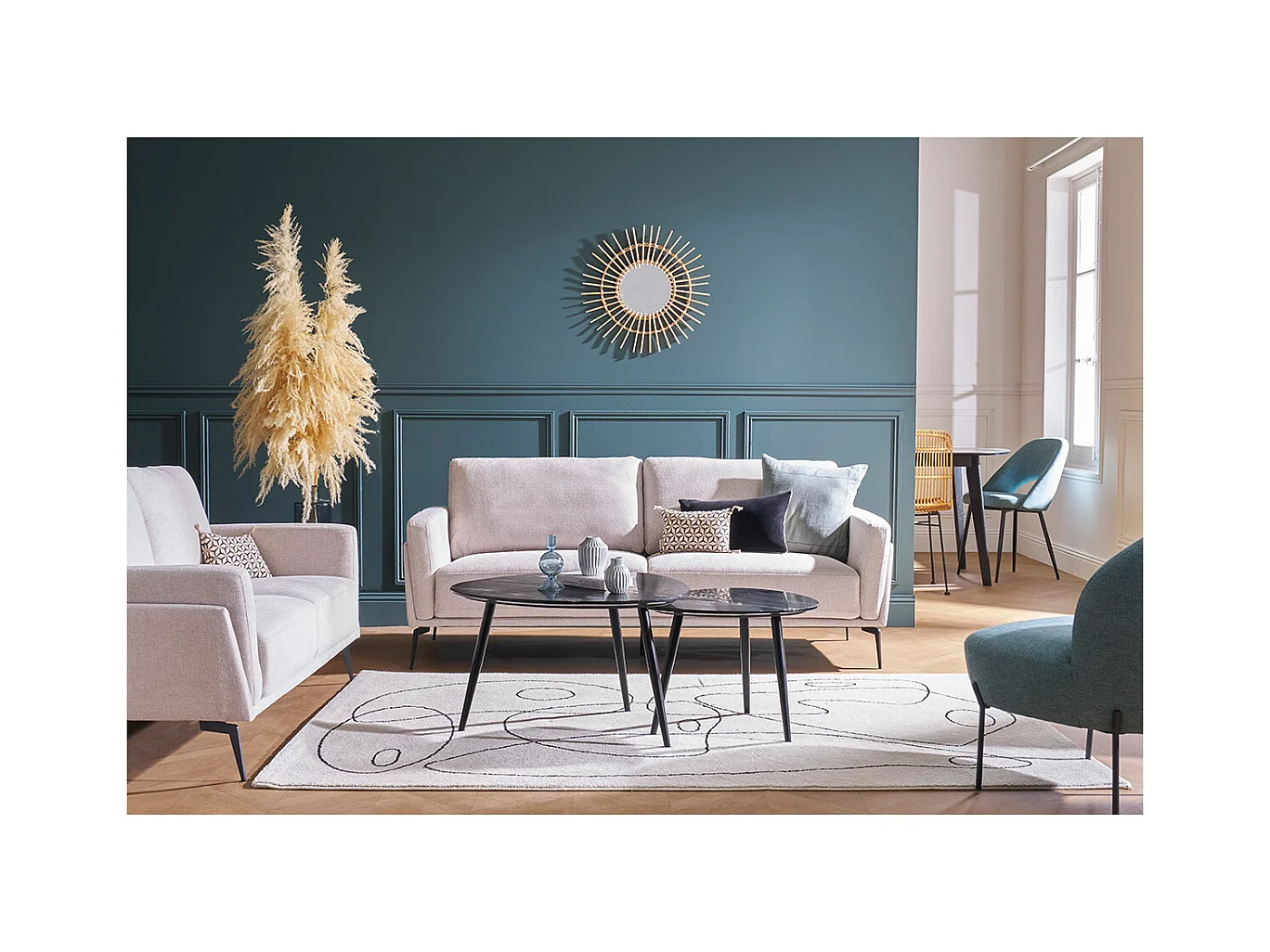 Design-Sofa mit Stoff im Samtdesign Beige 3-Sitzer MOSCO