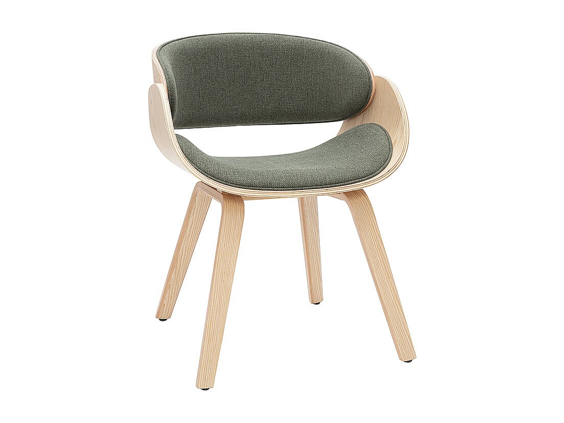 Design-Stuhl aus khakigrünem Stoff und hellem Holz BENT
