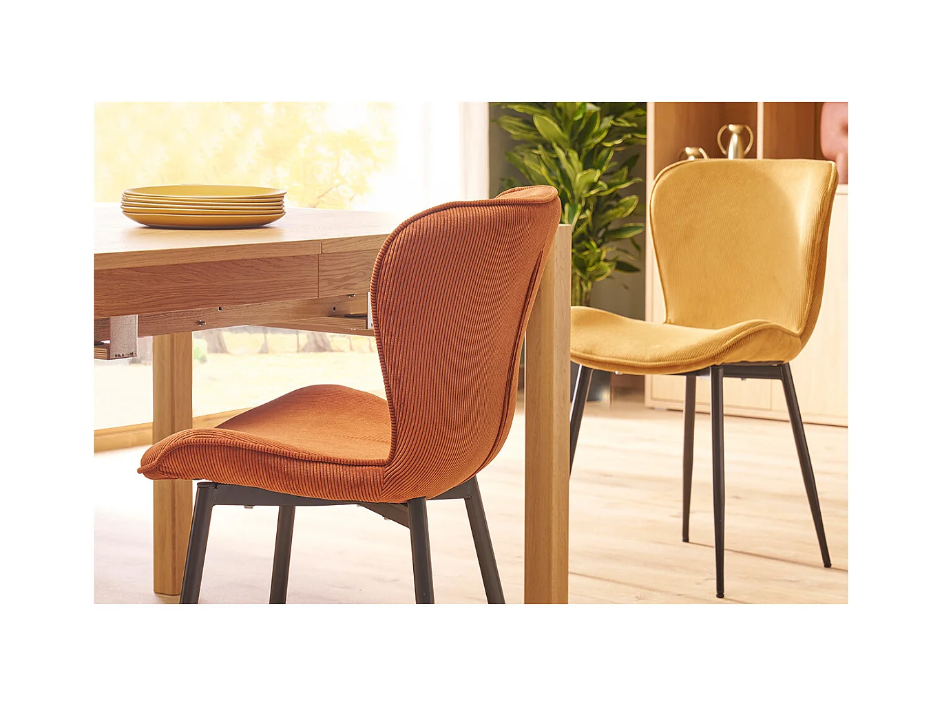 Design-Stühle aus Cordstoff in Terracotta und schwarzem Metall (2er-Set) ADDICT