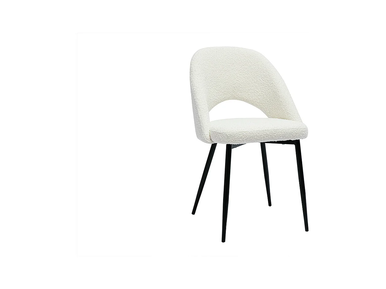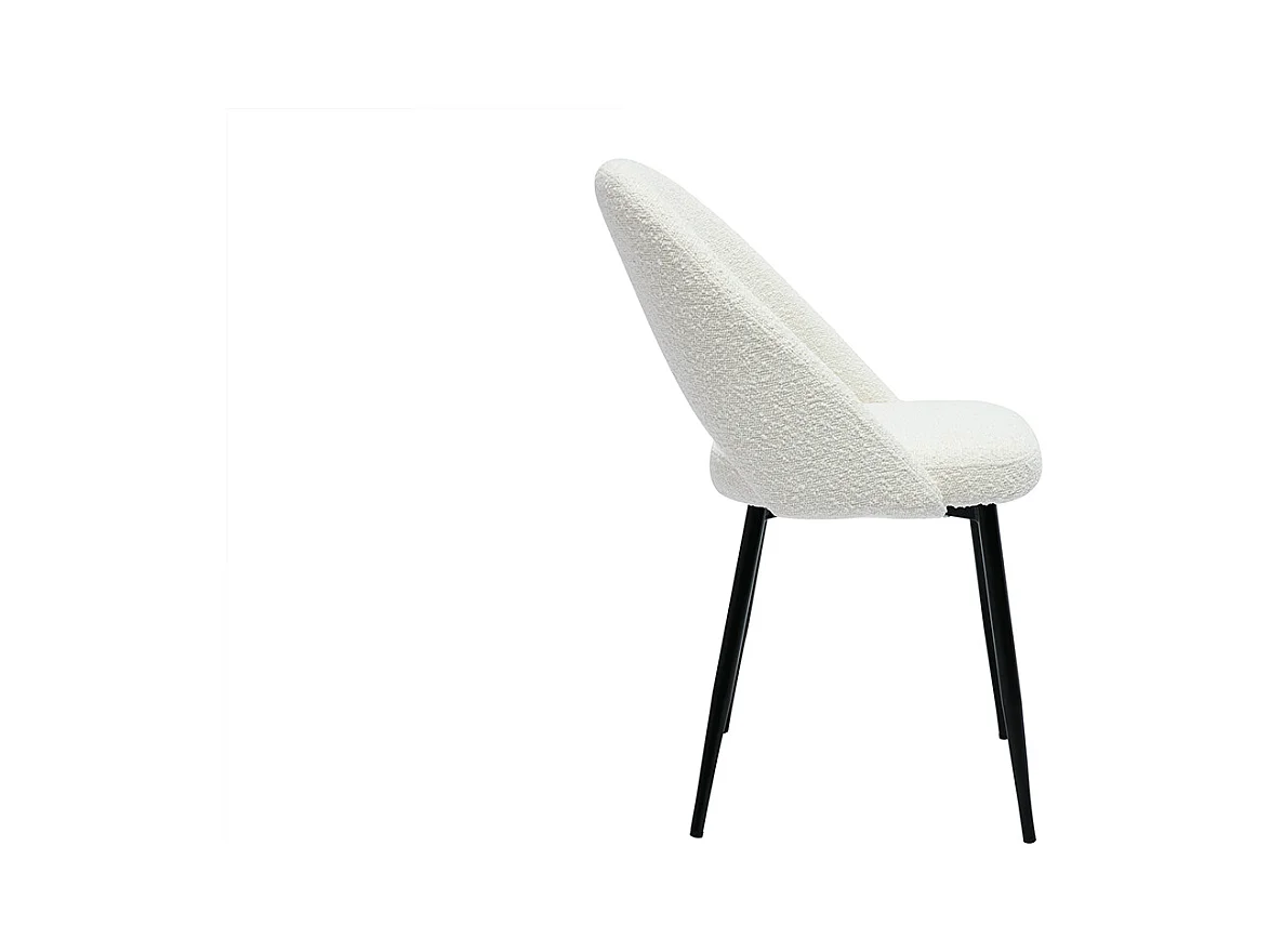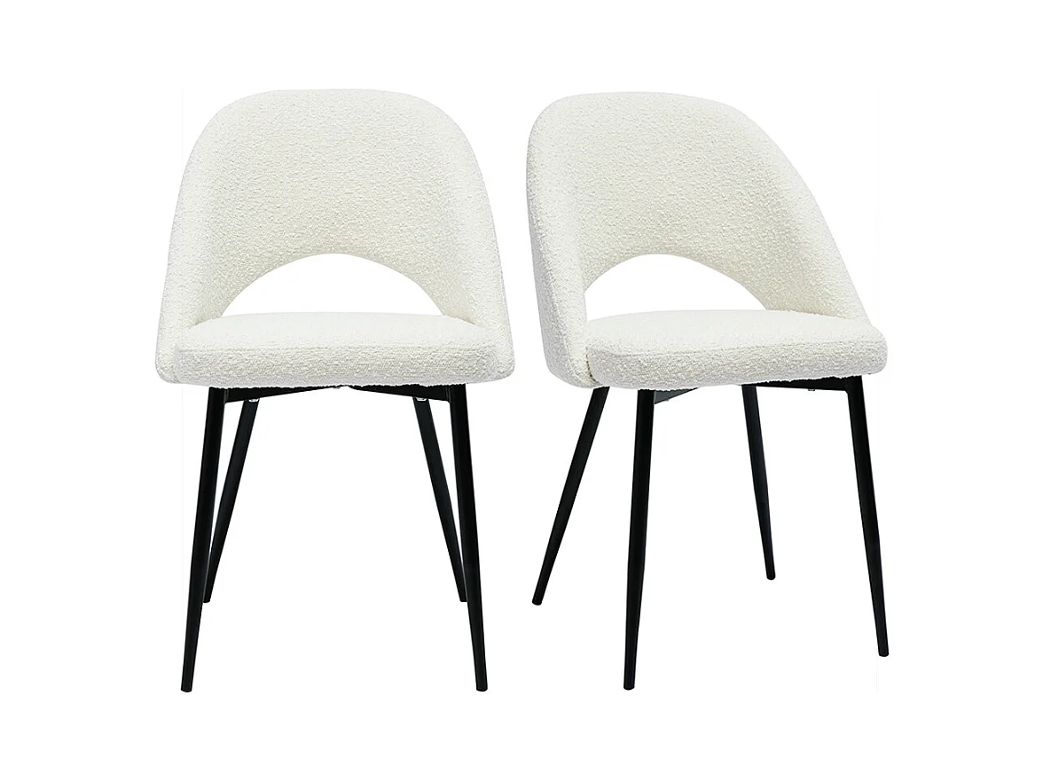 Design-Stühle aus Stoff mit Bouclé-Wolleffekt in Weiß und schwarzem Metall (2er-Set) COSETTE