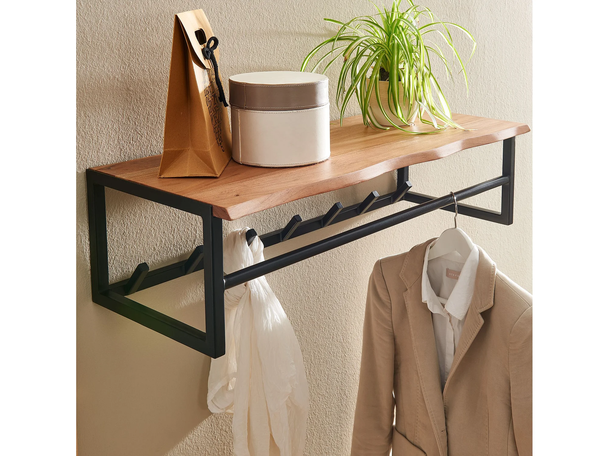Design Wandgarderobe Akazie Massivholz / Metall 80x22x33 cm, Hakenleiste mit Ablage und