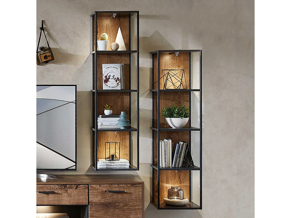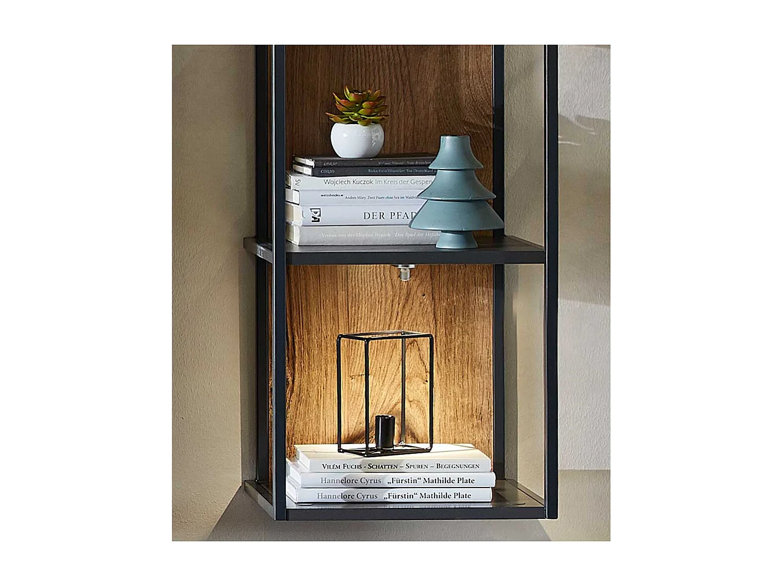 Design Wandregal in Eiche dunkel Optik und Dunkelgrau 35 cm breit