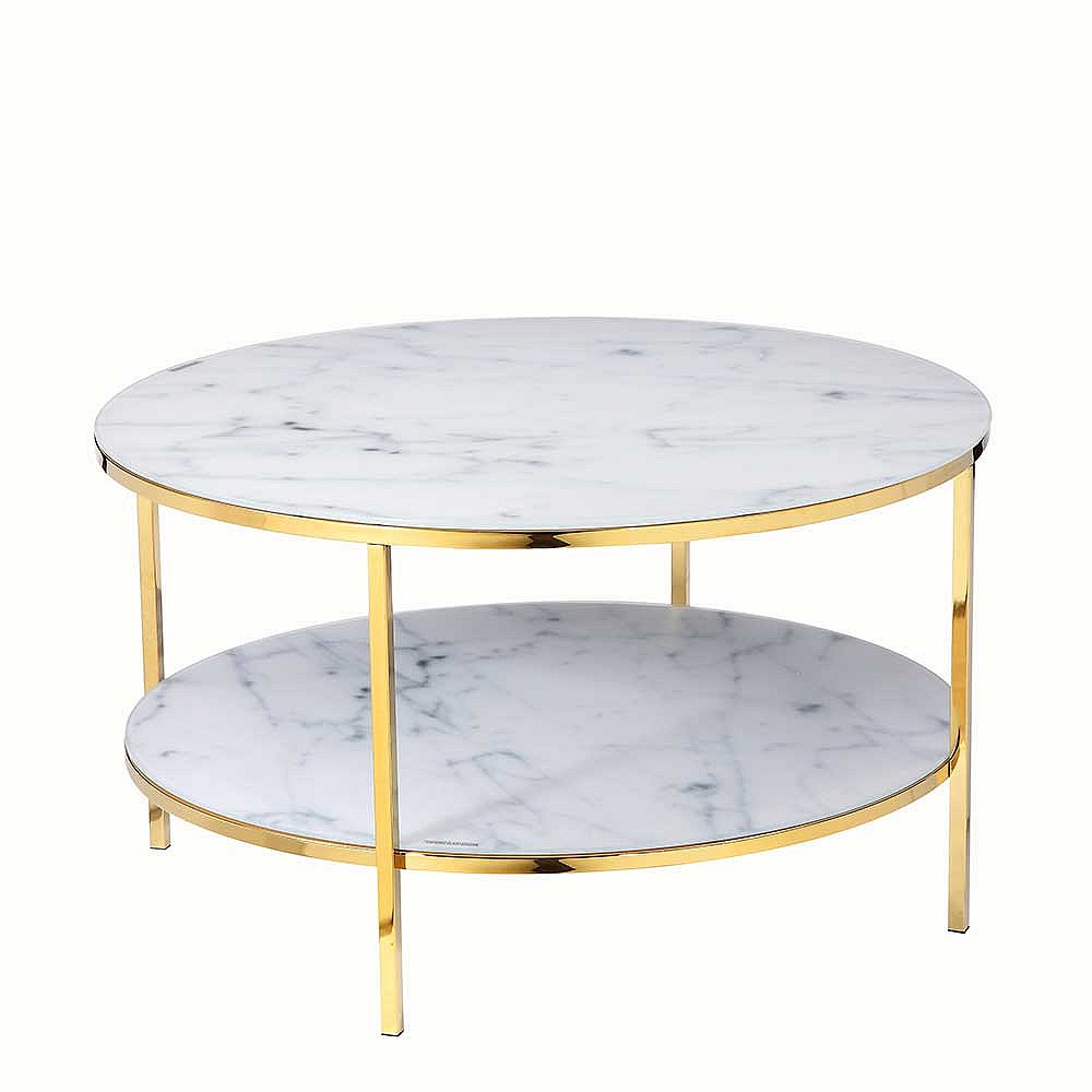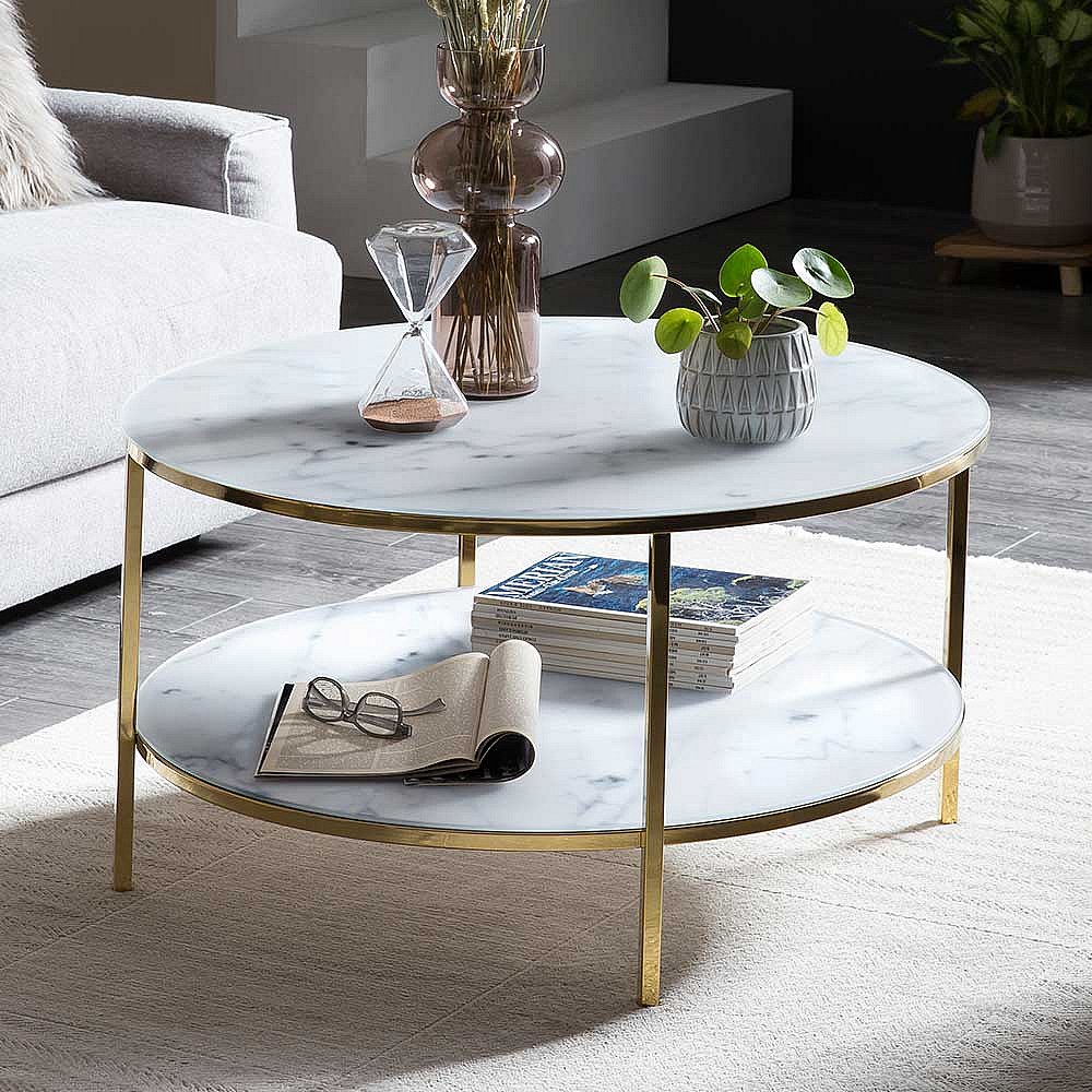Designcouchtisch in Weiß und Goldfarben Marmoroptik