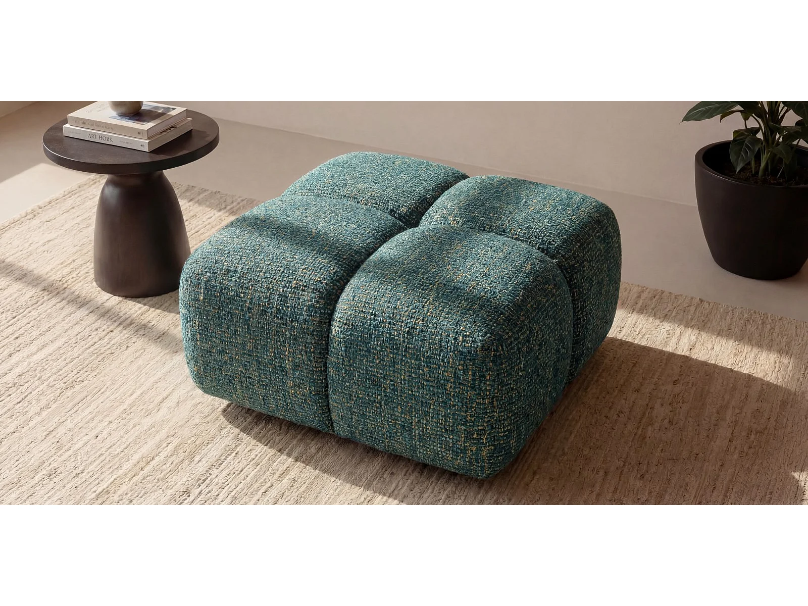 Designer Pouf / Polsterhocker ALVERO 88x88 cm – Puente Dunkelgrün 37 – Premium Strukturstoff – HR-Schaum