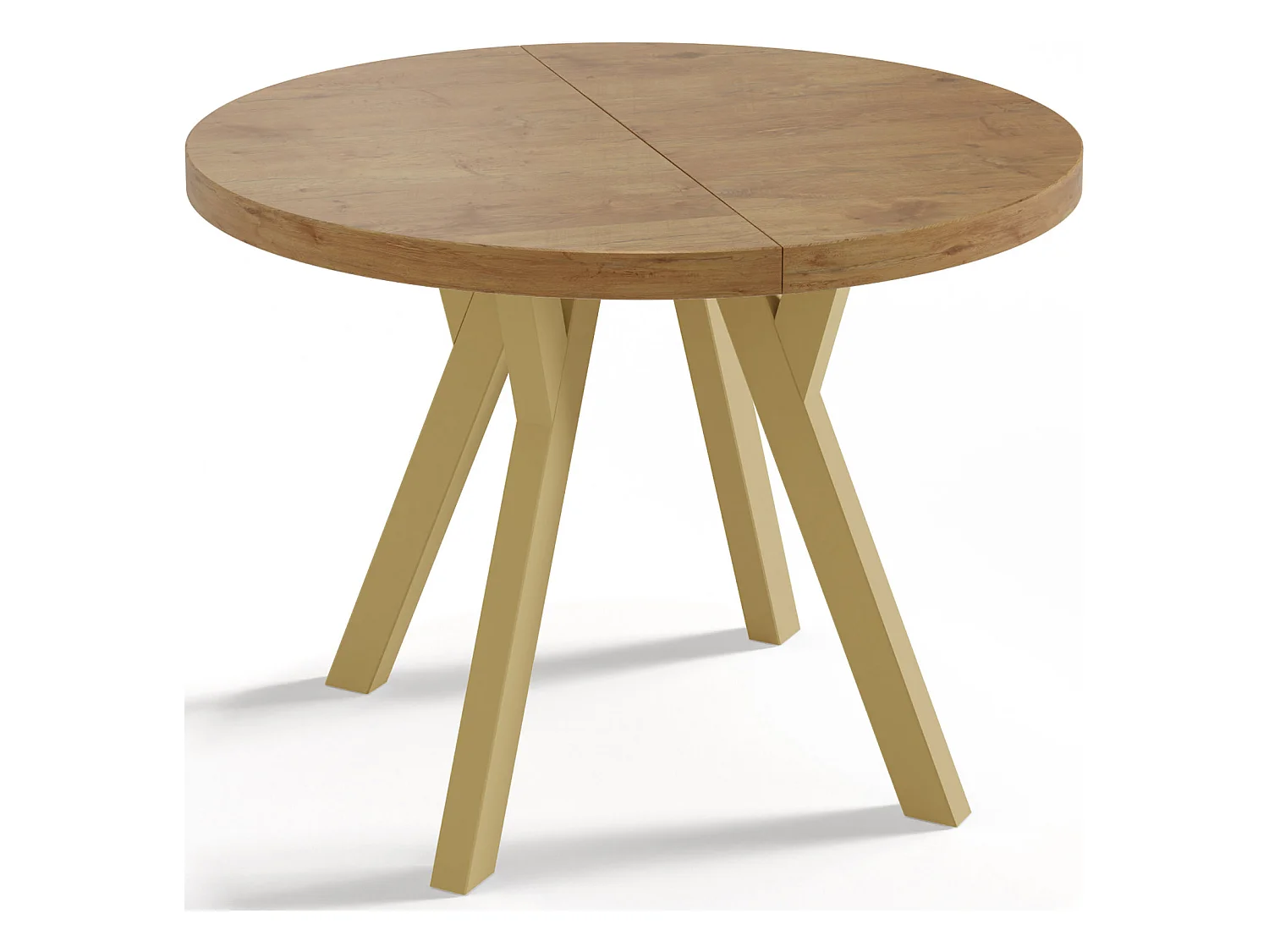 Designer Runder Ausziehbarer Esstisch - Loft-Stil, Platzsparend - Goldene Beine - 100 bis 150 cm - für 6-8 Personen - Hergestellt in EU - Lancelot Eiche - 150 cm