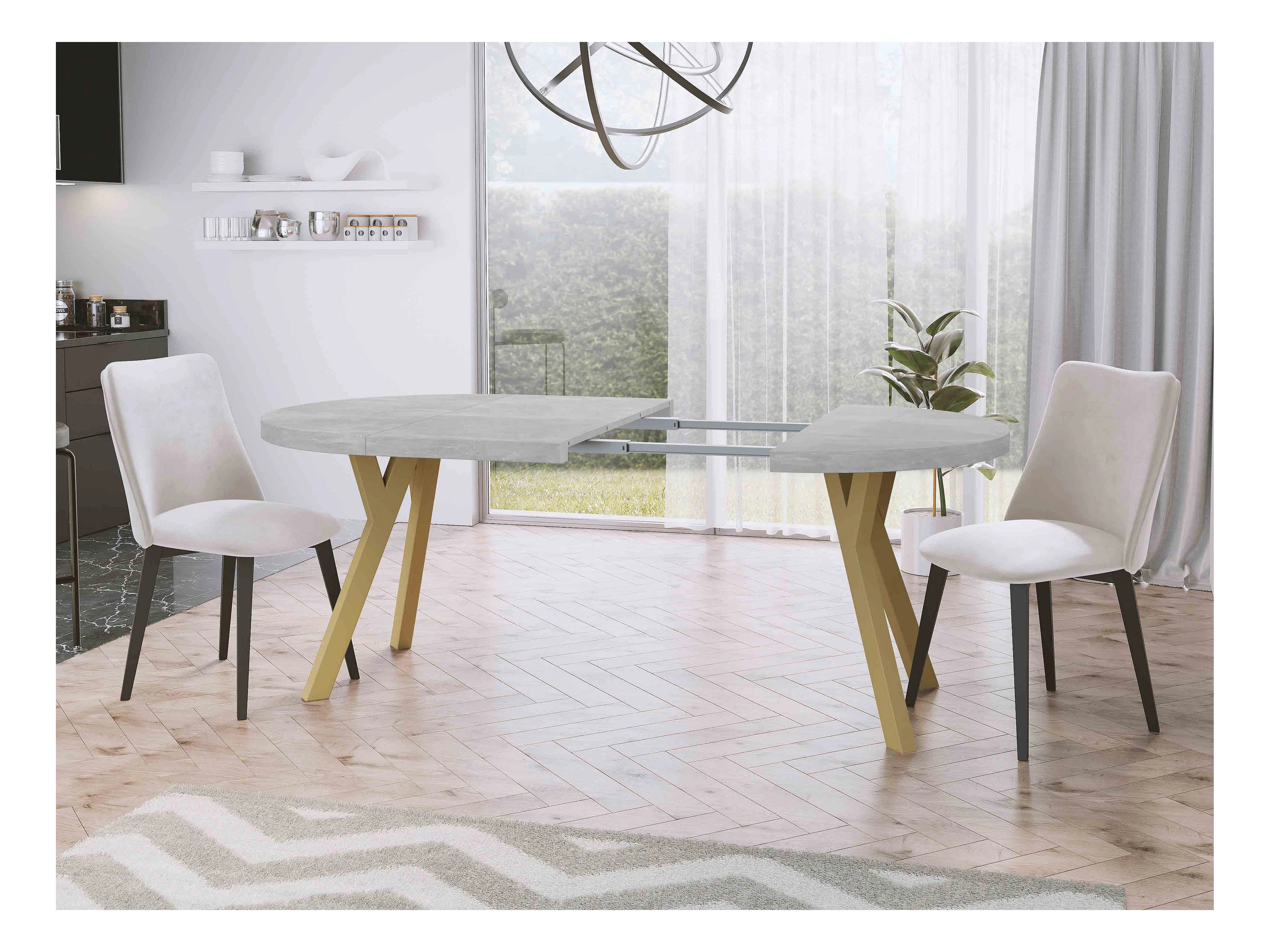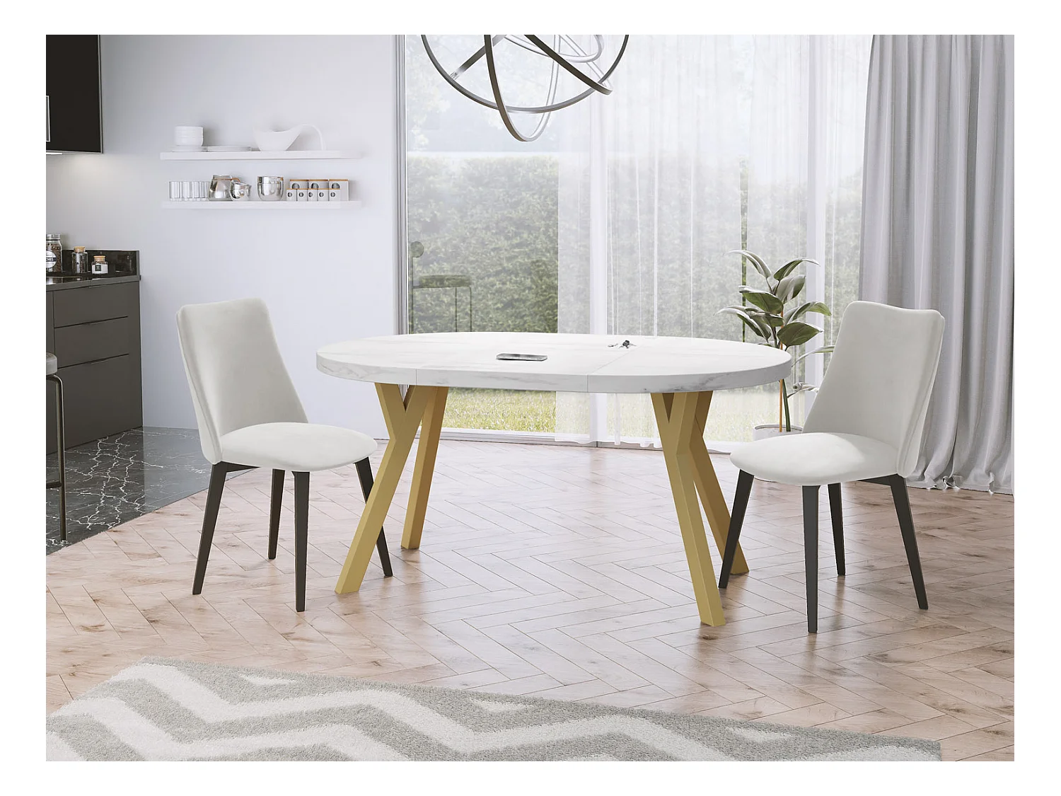 Designer Runder Ausziehbarer Esstisch - Loft-Stil, Platzsparend - Goldene Beine - 100 bis 150 cm - für 6-8 Personen - Hergestellt in EU - Marmor Weiß - 150 cm