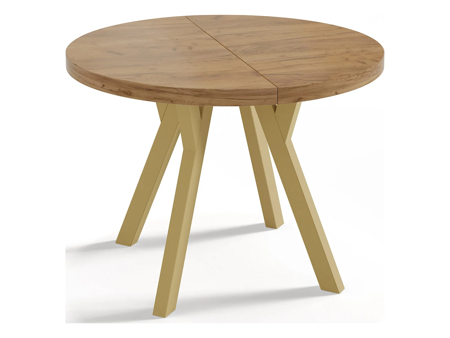 Designer Runder Ausziehbarer Esstisch - Loft-Stil, Platzsparend - Goldene Beine - 100 bis 200 cm - für 8-10 Personen - Hergestellt in EU - Wotan Eiche - 200 cm