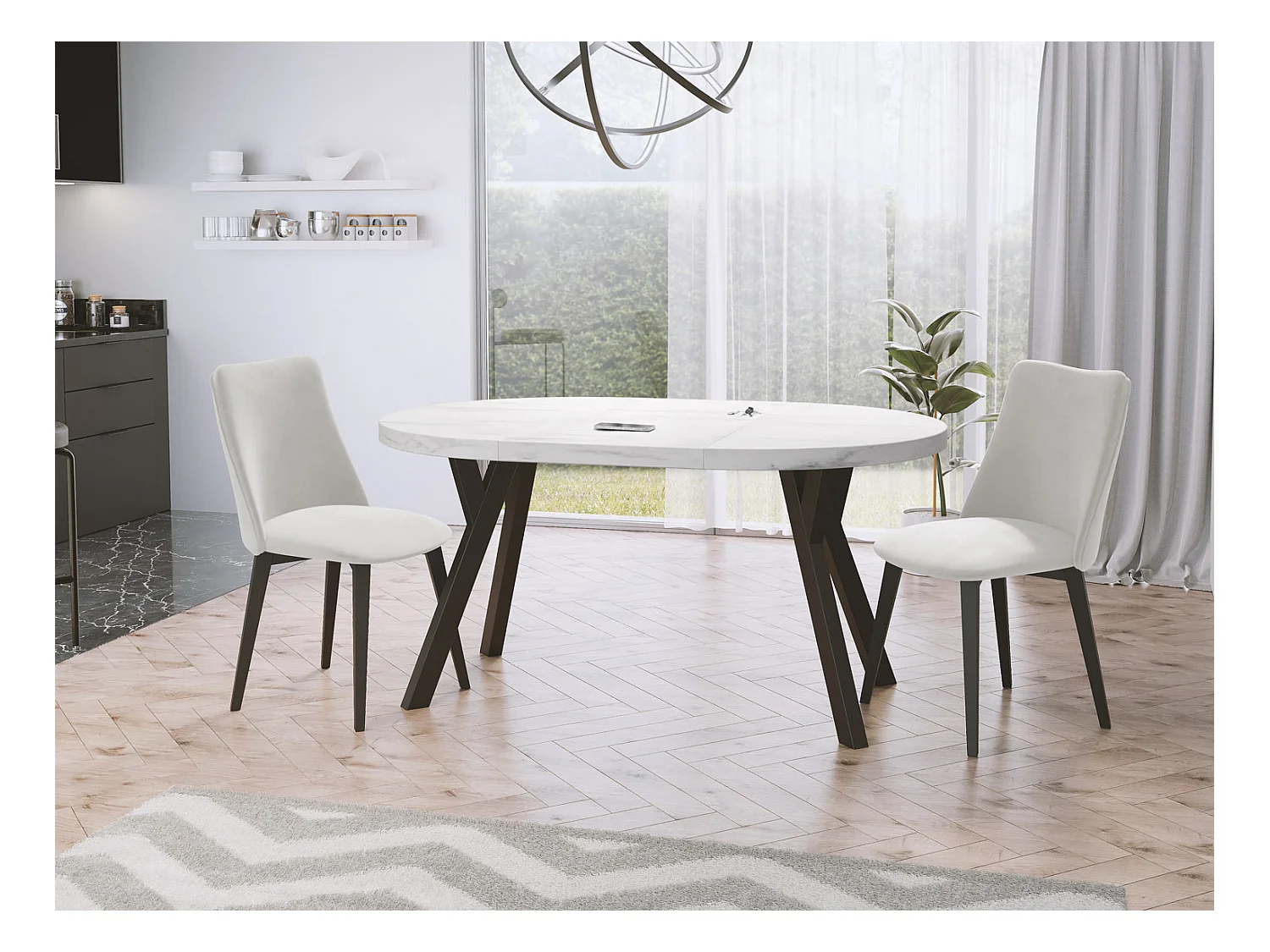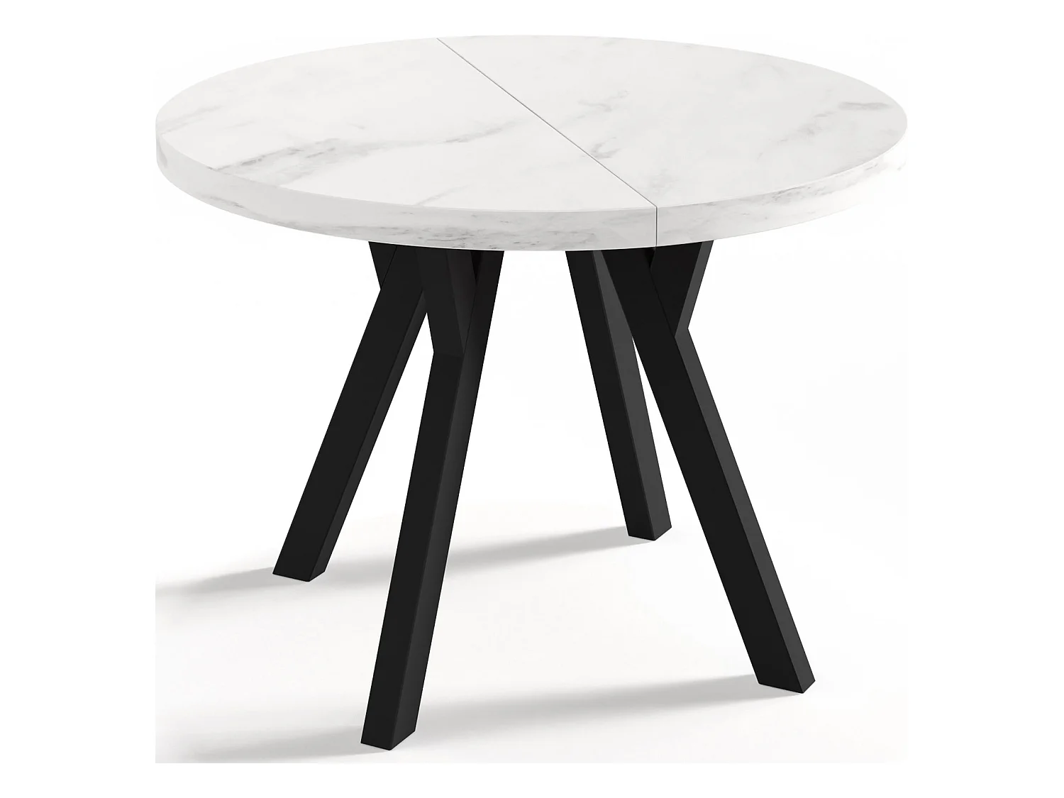 Designer Runder Ausziehbarer Esstisch - Loft-Stil, Platzsparend - Schwarze Beine - 100 bis 150 cm - für 5-8 Personen - Hergestellt in EU - Marmor Weiß - 150 cm