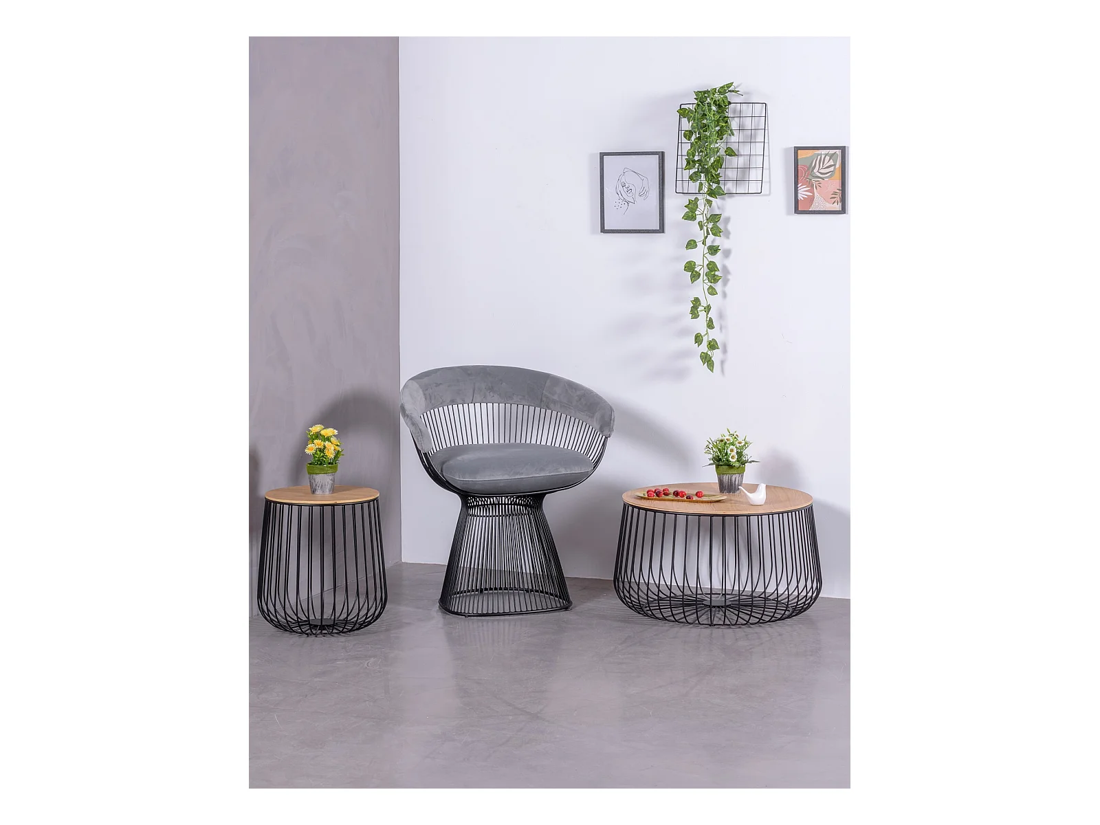 Designer-Sessel mit Samtbezug und Stahlgestell - Albert - Grau