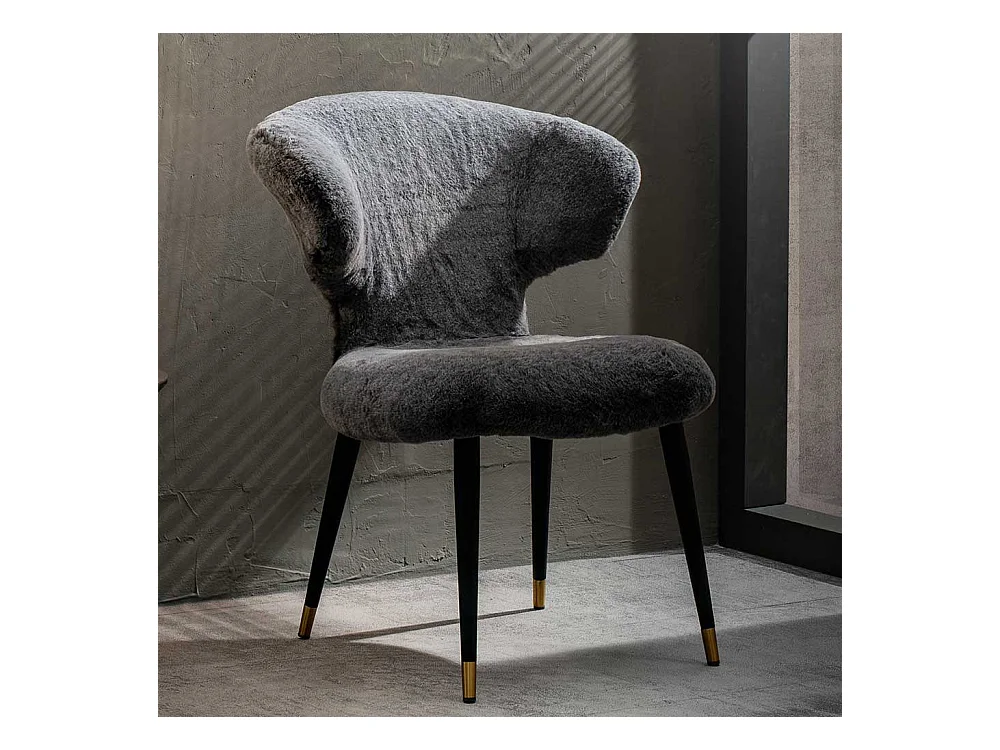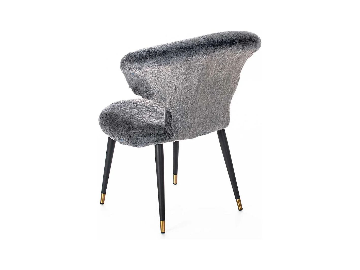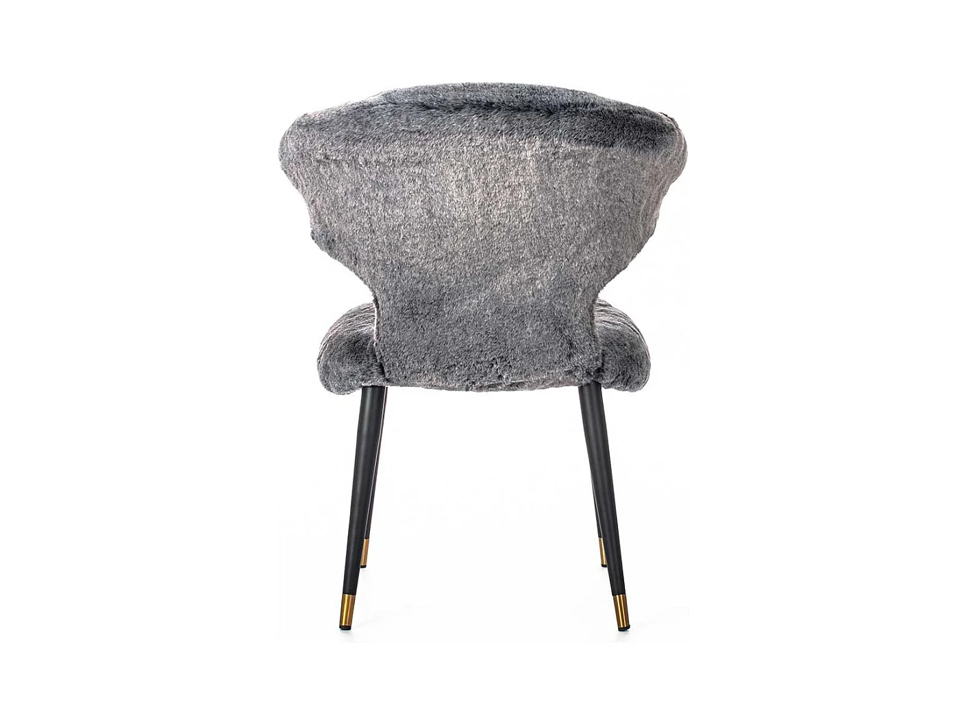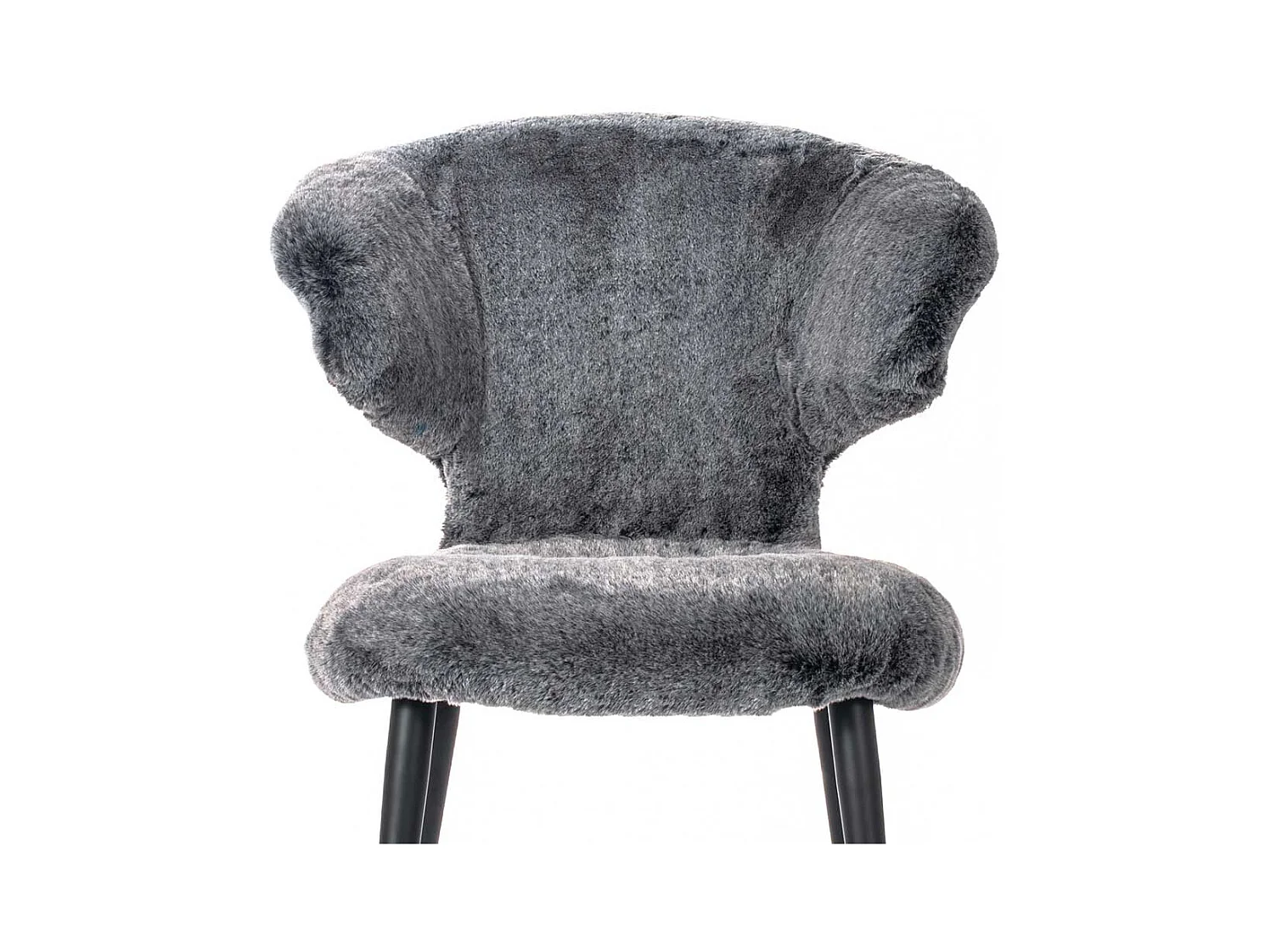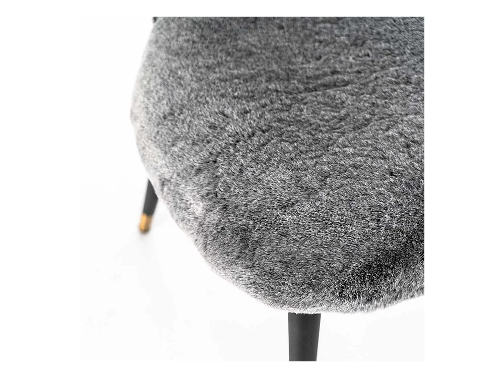 Designer Stuhl aus Kunstfell und Metall Grau und Schwarz