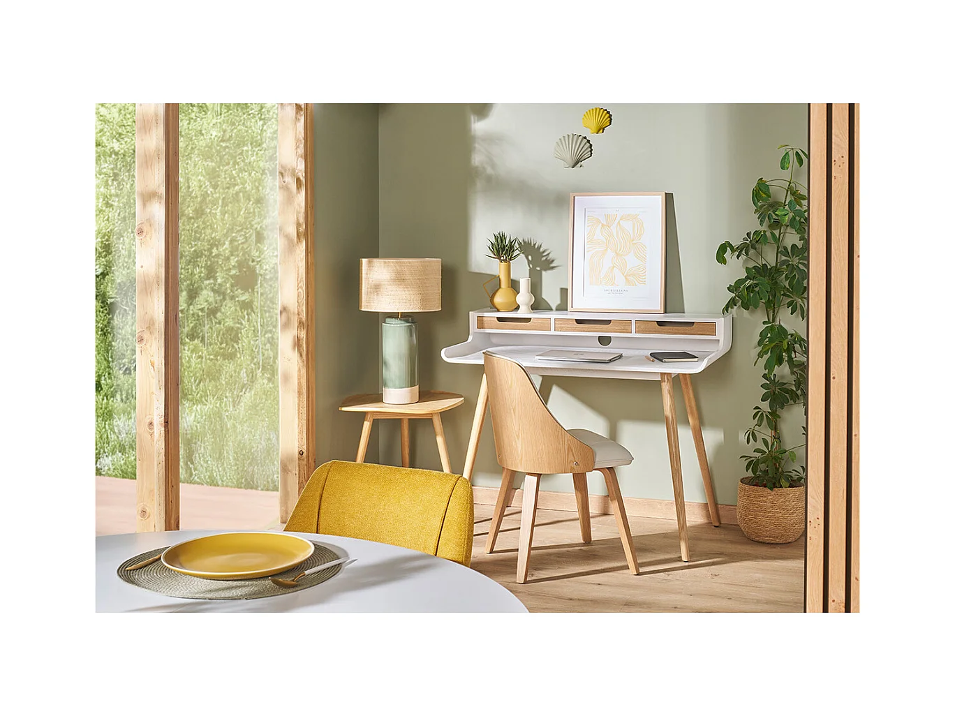 Designer-Stuhl aus zwei Materialien weiß und helles Holz FLUFFY