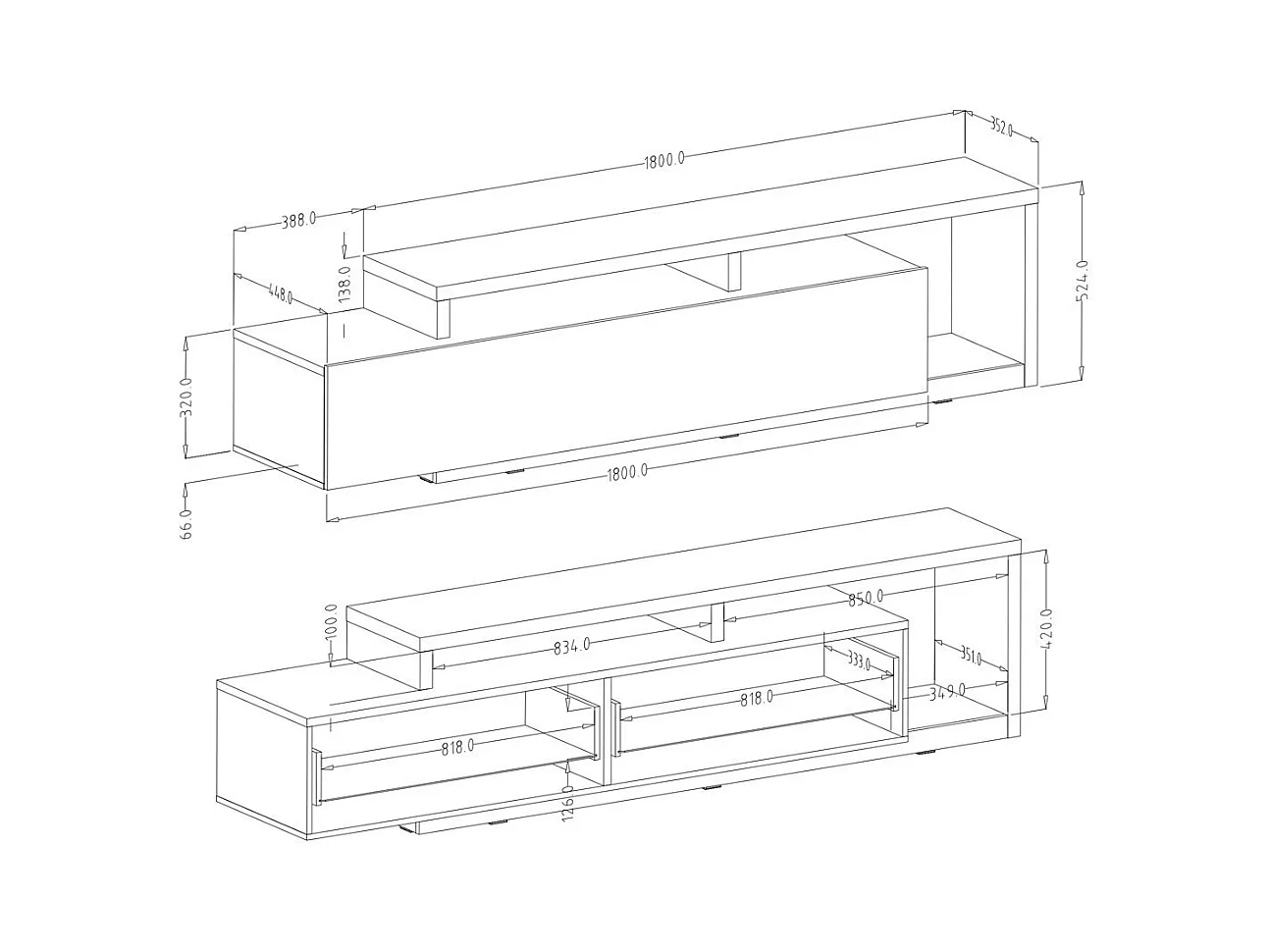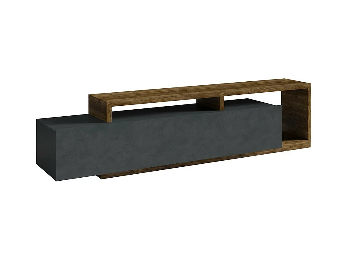 Designer-TV-Möbel 220 cm, Kollektion BERGAME. Farbe Grau und dunkle Eiche.