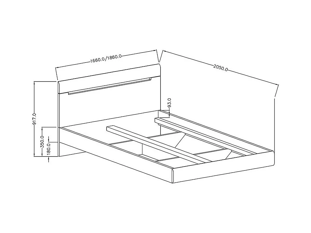 Designerbett für Erwachsene 180x200 aus der Kollektion LUCIA. Farbe Grau und Eiche.