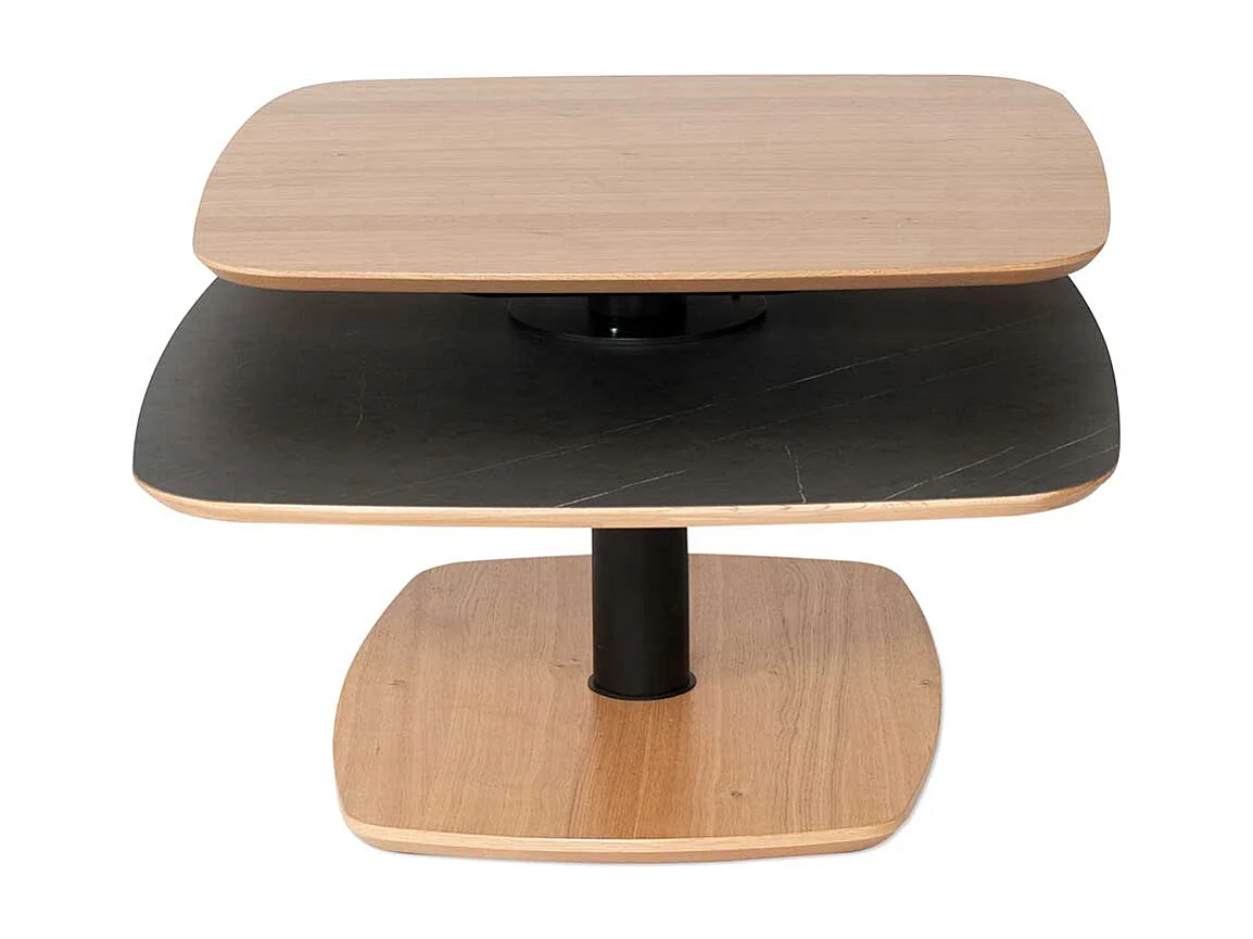 Designercouchtisch in Schwarz und Wildeiche furniert schwenkbarer Tischplatte