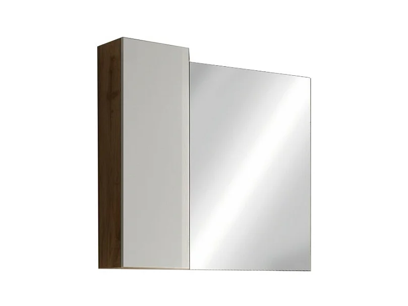 Designerspiegel mit Aufbewahrung, 78x75 cm, Kollektion BURA, in glänzendem Weiß und hellem Eichenholz.