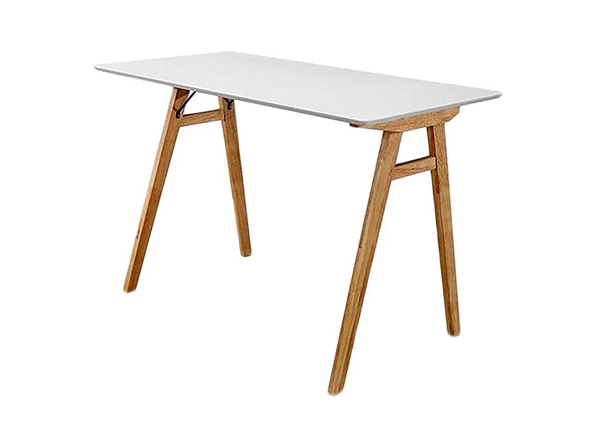 Designschreibtisch in Weiß und Holz Naturfarben Skandi Style