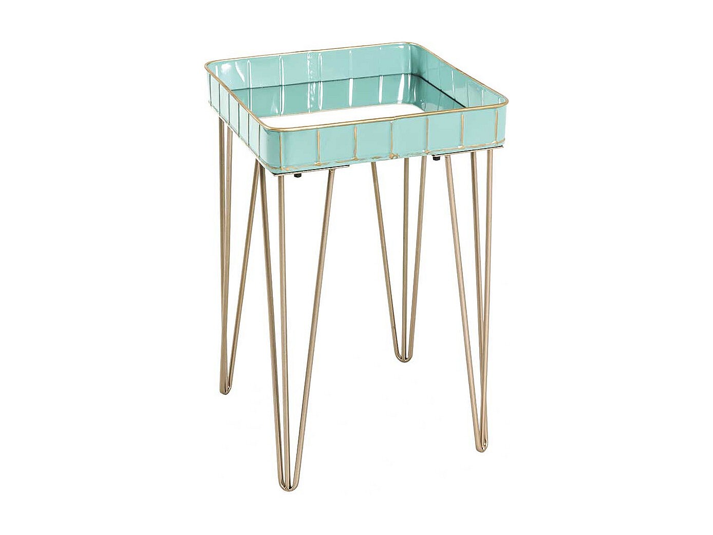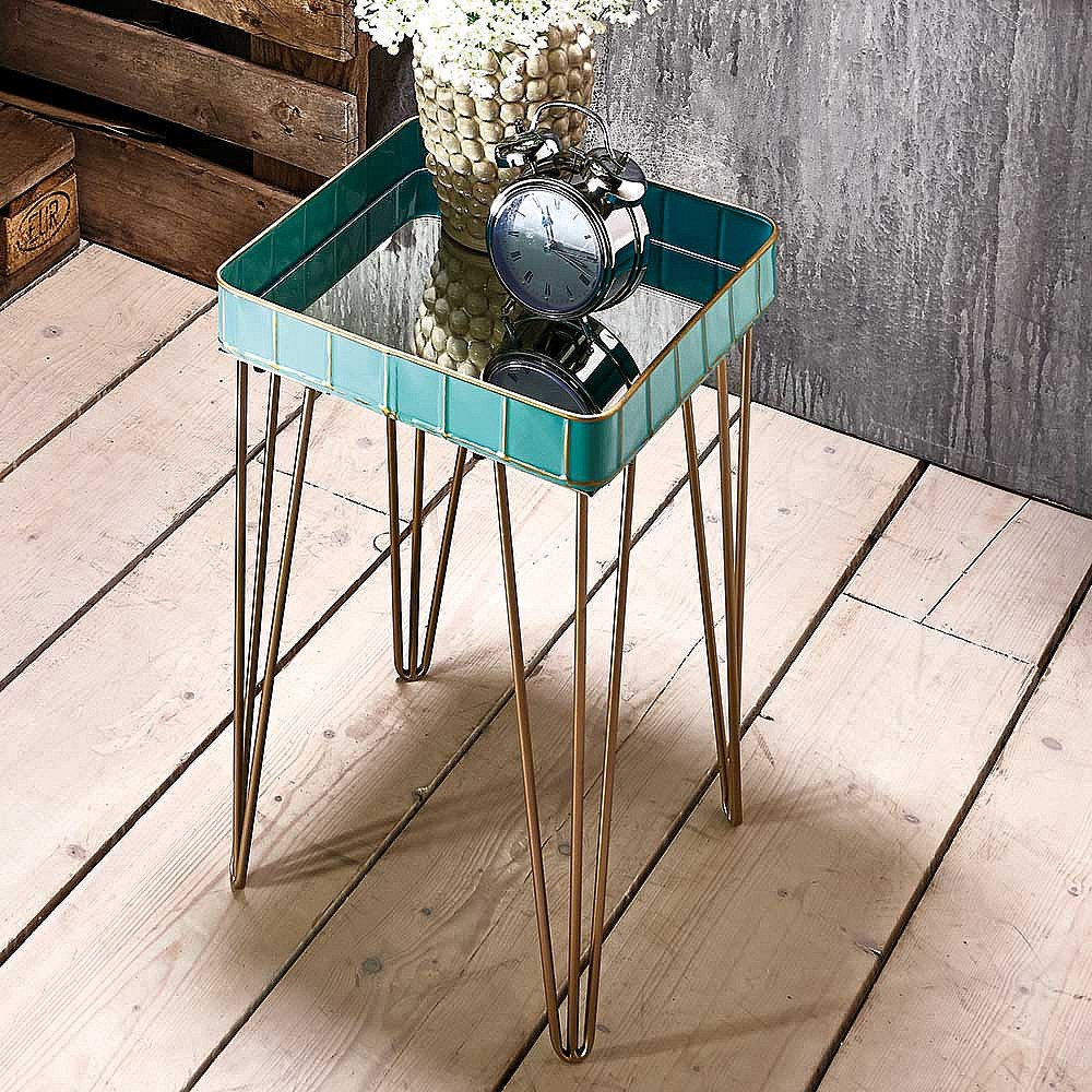 Designtisch in Türkis und Bronzefarben Spiegelglas Platte